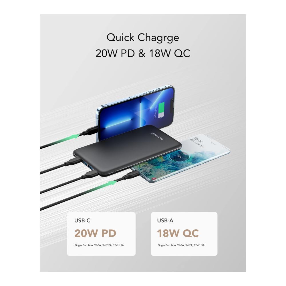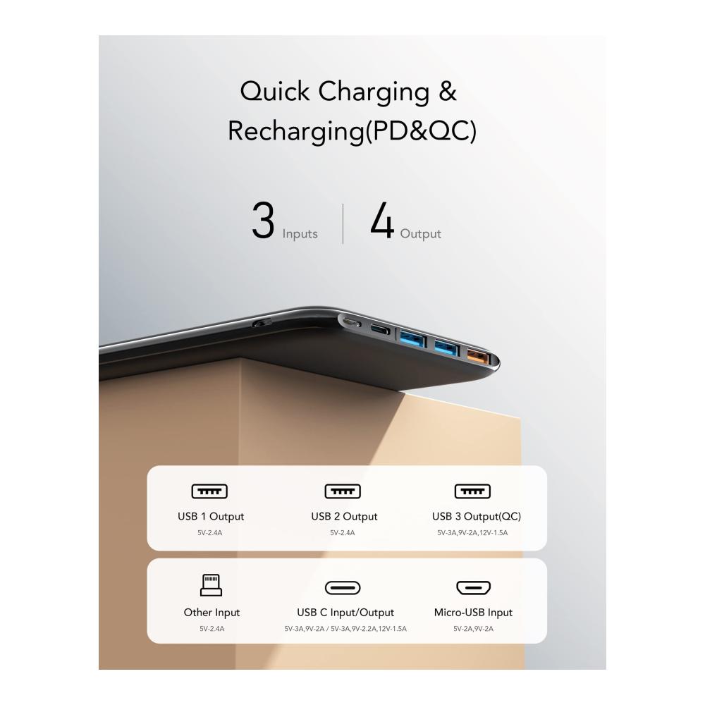 【Power Delivery USB-C Port】Typ-C-Port mit PD-Protokoll kann 9-12V Hochspannungsausgang, der das Aufladen schneller macht.Der USB-C-Port ist vielseitig, Verwenden Sie es, um Ihre Geräte mit atemberaubender Geschwindigkeit zu laden, oder verwenden um die Energiebank selbst aufzuladen,MacBook oder anderen USB-C-Geräte mit PD Funktion die optimale Ladegeschwindigkeit.
