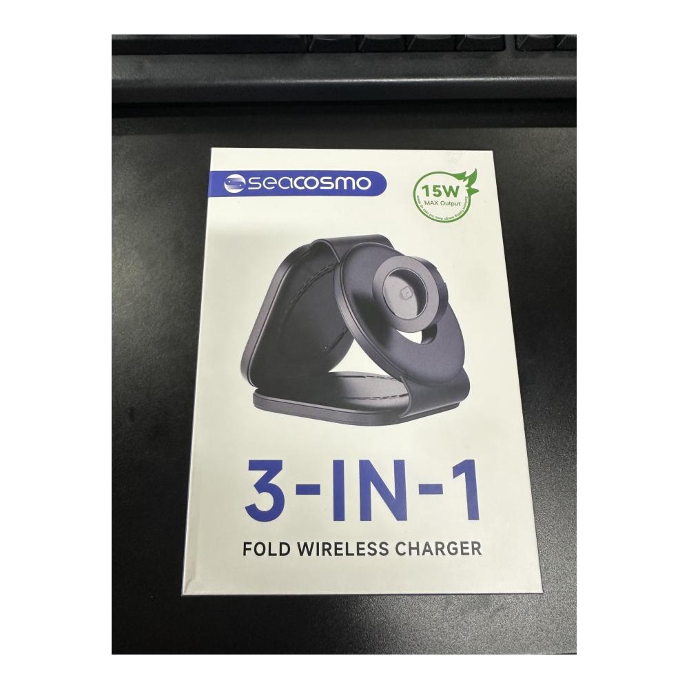 Diese faltbare 3-in-1 induktive Ladestation von seacosmo bietet eine vielseitige Ladelösung für iPhone 15/14/13/12 Series, Apple iWatch 9/8/7/6/SE und AirPods 1/2/Pro. Mit einem 18-W-QC-3.0-Adapter und USB Typ C-Kabel für schnelles Laden und einer Aufbewahrungsbox für unterwegs. Das magnetische Design fixiert Ihre Geräte sicher in der Ladeposition, während der klappbare Ständer Flexibilität beim Betrachten bietet. Zertifiziert für Sicherheit und mit intelligenten Schutztechnologien ausgestattet, ist dieses Ladegerät eine praktische und zuverlässige Option für Ihr Zuhause oder Büro.