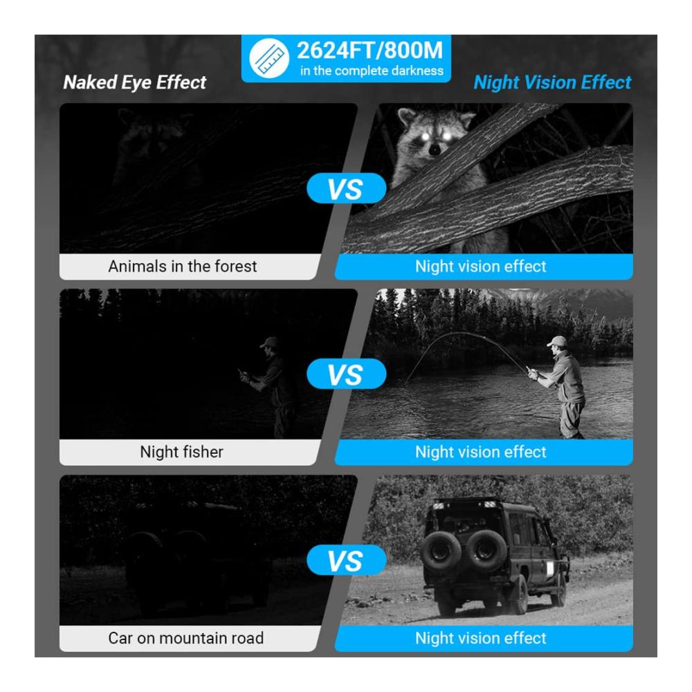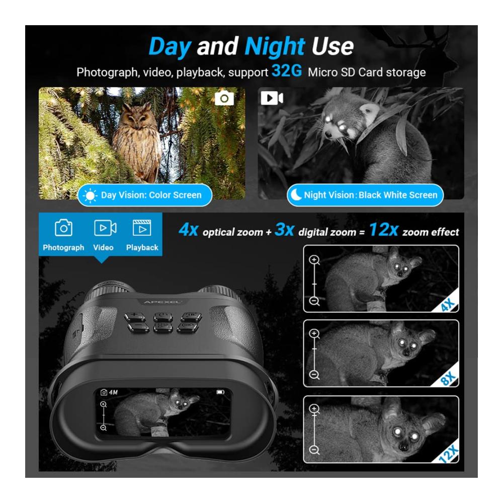 • ✦ Digitalzoom, Zoomvergrößerung: Dieses Nachtsichtgerät verfügt über 4-fach Teleobjektiv plus 3-fach Digitalzoom, und die visuelle Vergrößerung kann das 12-fache erreichen.