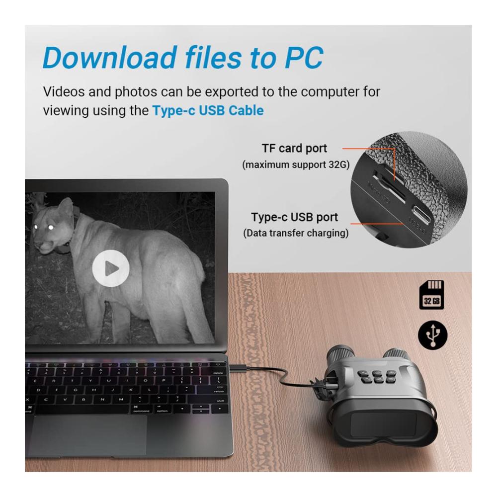 • ✦ Neue und Aktualisierte Version: NV008 binokulares digitales Infrarot-Nachtsichtgerät mit großem Bildschirm, das die Funktion hat, Bilder und Videos aufzunehmen.Das Video kann zur Anzeige über USB an den Computer angeschlossen werden.Das Nachtsichtgerät ist mit einem High- Definitionsbildschirm und Okular, die bequem zu beobachten sind.