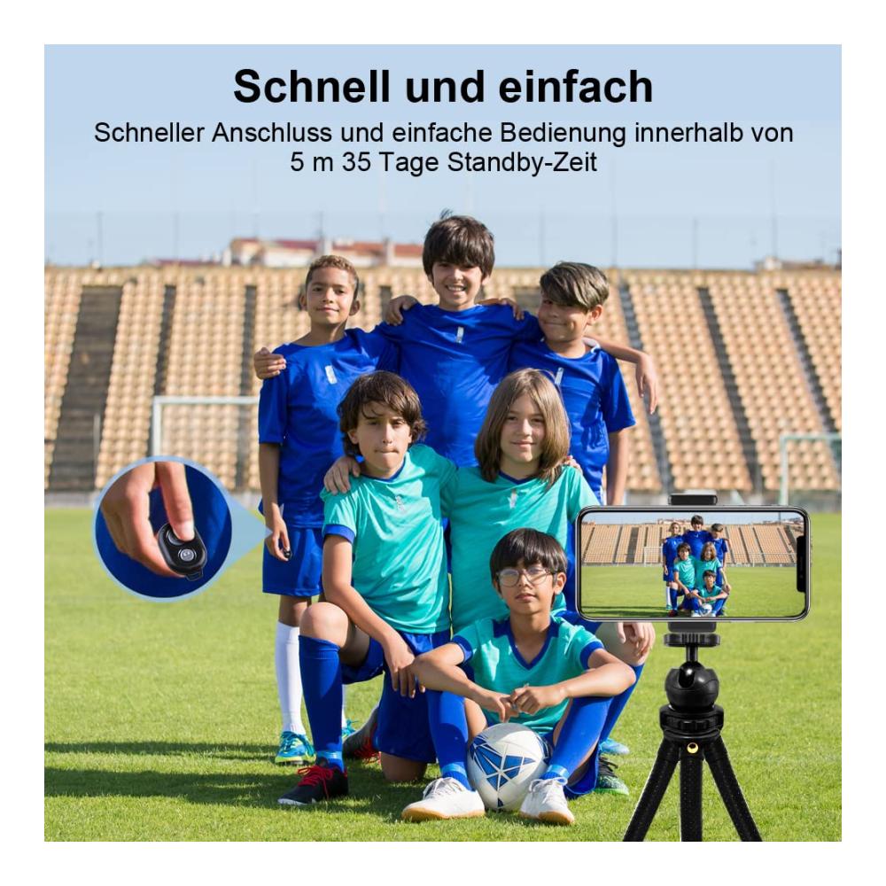 Dank der mitgelieferten Bluetooth Fernbedienung können Sie aus der Ferne perfekte Selfies und Gruppenfotos machen. Das Dreibein-Design sorgt für Stabilität, während die Klemm- und Mini-Stative Kompatibilität eine breite Palette von Geräten unterstützt.