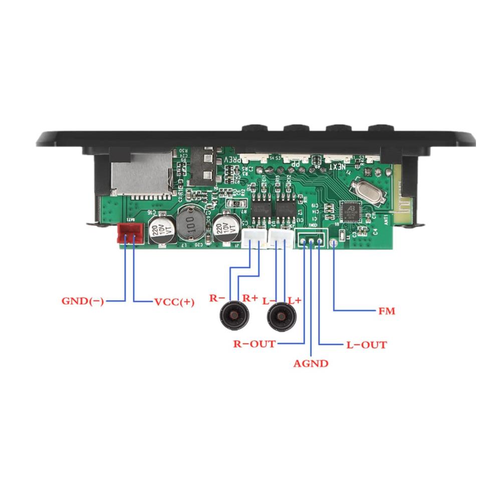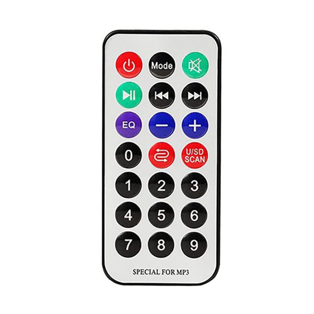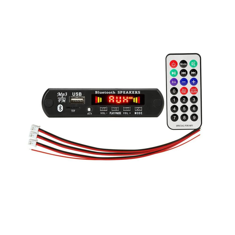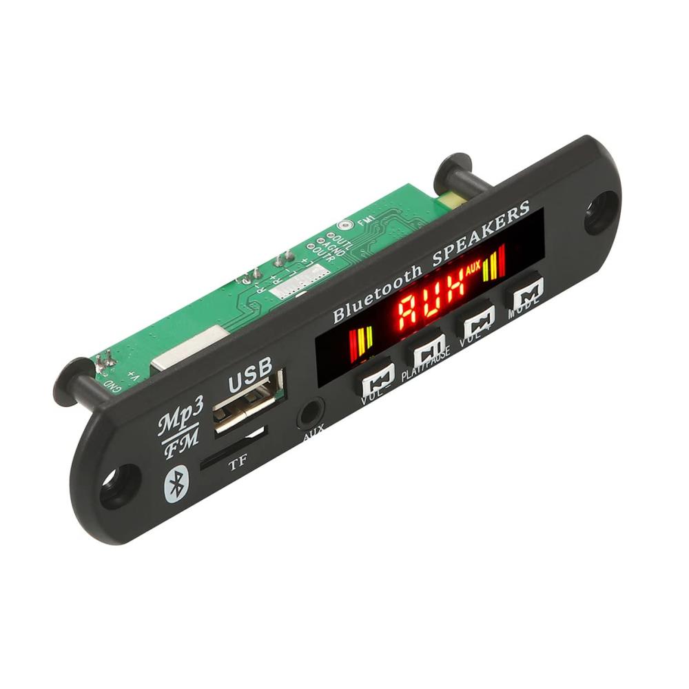 Zpoicaegn 2. PAUSE/PLAY- (Wiedergabe/Pause): kurzes Drücken von PAUSE/PLAY MP3-Zustand zum Abspielen/Pause; in FM Zustand kurz drücken, um abzuspielen/zu pausieren, kurz drücken, um den Sender automatisch zu schließen und zu speichern; Kurz drücken, um die Bluetooth-Funktion abzuspielen/anzuhalten.3. (nächstes Lied/lauter): MP3-Zustand, kurzes Drücken für das nächste Lied, langes Drücken für lauter; FM-Zustand ist kurzes Drücken um eine Stationsnummer zu senken; In der Bluetooth-Funktion wird durch kurzes Drücken der nächste Bluetooth-Song angezeigt und durch langes Drücken wird die Lautstärke verringert.4. MODE-: Umschalten zwischen USB / TF / FM / Audioeingang / Bluetooth-Funktion.Beschreibung der Anruf-/Aufzeichnungsfunktion1. Halten die MODE- 2 Sekunden gedrückt, um die Aufnahme zu starten, drücken und halten die MODE- erneut 2 Sekunden , um die Aufnahme abzubrechen und die aktuelle Aufnahmedatei abzuspielen;2. Aufnahmemodus müssen ein Speichergerät anschließen: U-Disk oder TF-Karte. (Die Aufnahme unterstützt nur den USB/TF-)3. Drücken bei einem eingehenden Anruf lange die Pause-, um den Anruf anzunehmen.Farbe:schwarzMaterial:PCB Kunststoff MetallVerpackungsinhalt:1 x Decoderplatine4 x Kabel1 x Fernbedienung (ohne Knopfbatterie)Nur der oben genannte Paketinhalt, andere Produkte sind nicht enthalten.Hinweis: Wegen der Lichtreflexion und Bildschirme könnte der Farbeton in den Fotos sowie des tatsächlichen Produkts etwas unterschiedlich sein. Der erlaubte Messfehler ist /- 1-3 cm.