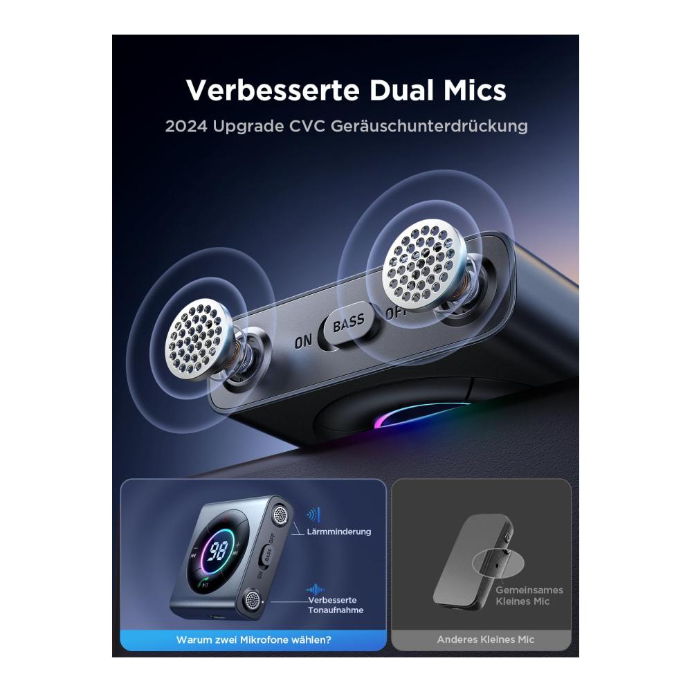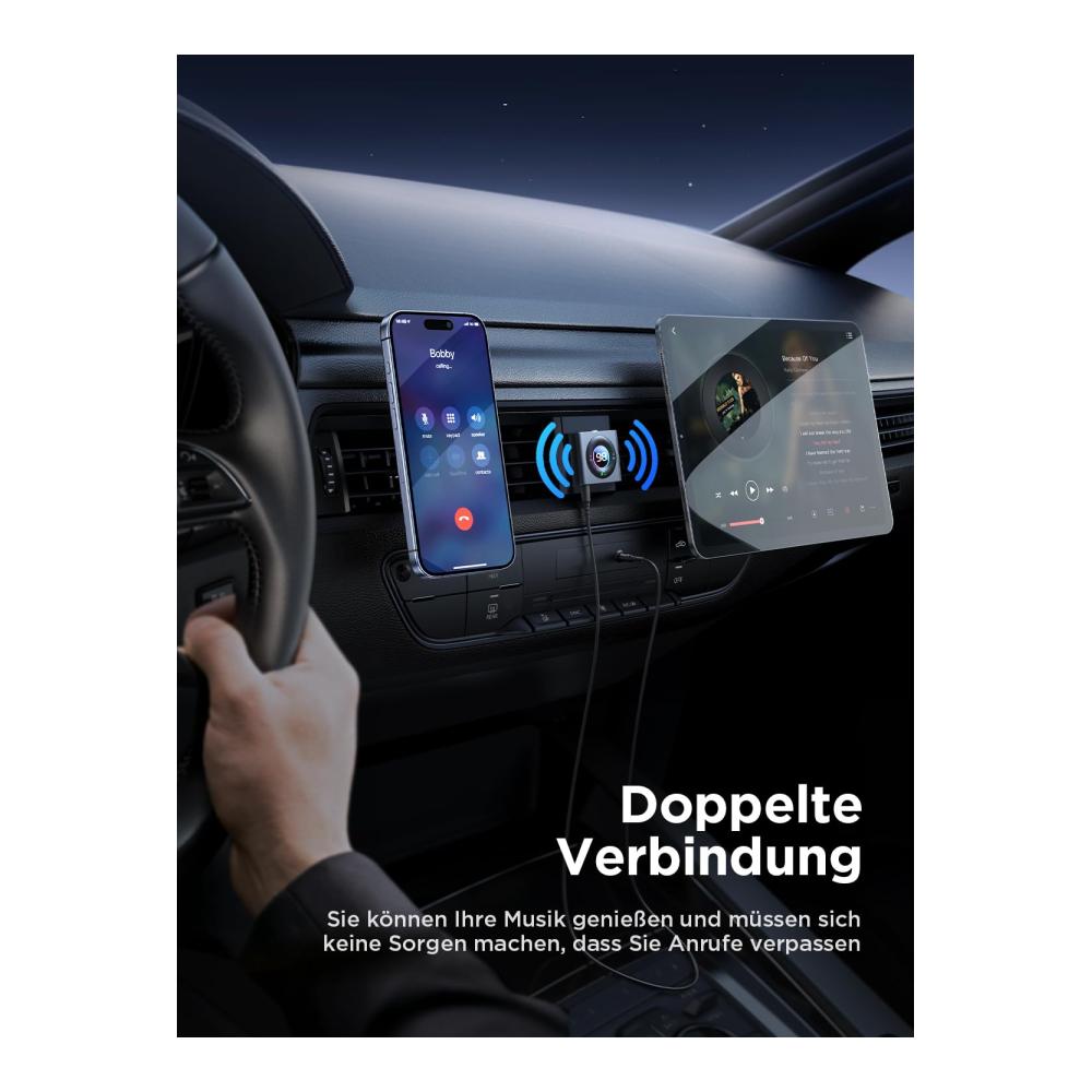 【Anrufe Klarer】Bluetooth aux adapter mit Duale Mikrofonen für eine Rundum-Klangabnahme, verbesserter CVC8.0-Technologie und eingebauten Filter-ICs ausgestattet, die Straßenlärm, aktuelle Geräusche und andere Störungen effektiv herausfiltern, so dass beide Parteien klarere Freisprechgespräche führen können.