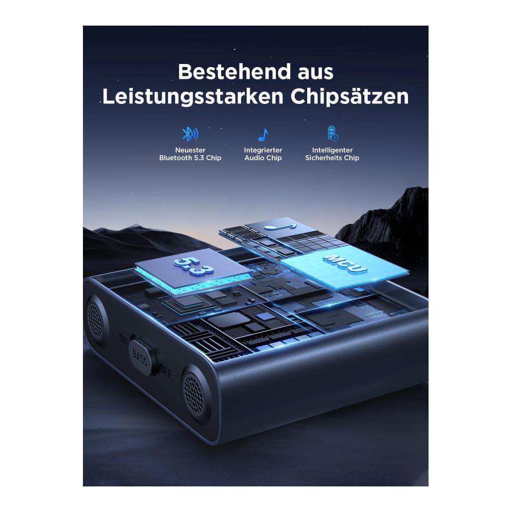【Bass Boosted & Hi-Fi Stereo】JOYROOM aux bluetooth adapter Schieben Sie einfach die &34;BASS&34;-Taste, um kraftvolle, tiefe Bässe und einen beeindruckenden Stereoklang zu genießen. Bluetooth adapter aux verfügt außerdem über hochwertige HiFi Stereo Technologie zur Wiederherstellung eines echten Klangs und kraftvoller Bässe für das ultimative Hörerlebnis.