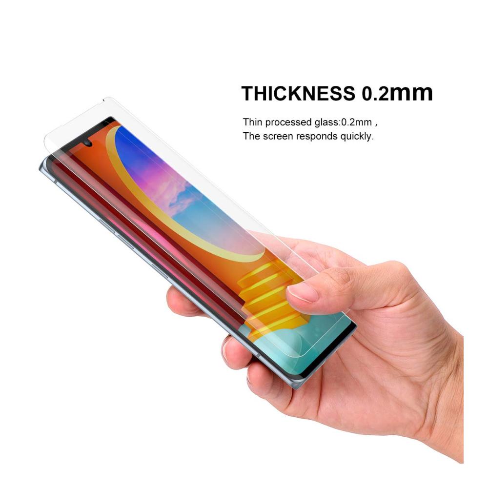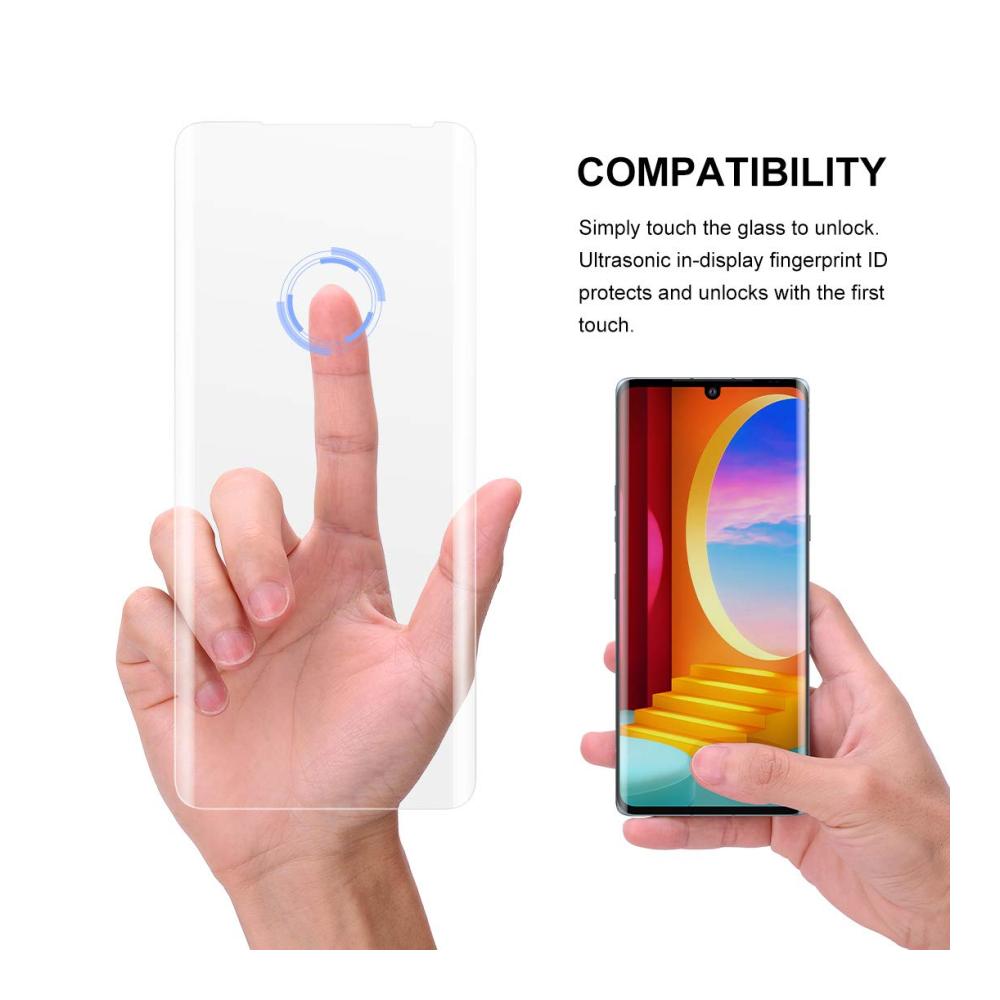 Exklusive Lösung für Ultraschall-Fingerabdruck: Die fortschrittliche flüssige, optische Klare Klebstoff-Technologie (LOCA) verhindert Mikroräume zwischen dem Gerät und gebogenem Glas, was nur die Lösung für den Ultraschall-Fingerabdrucksensor von LG Velvet macht.
