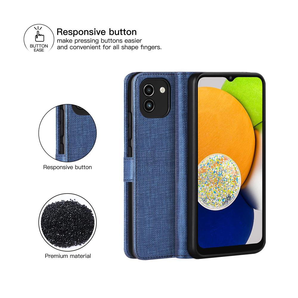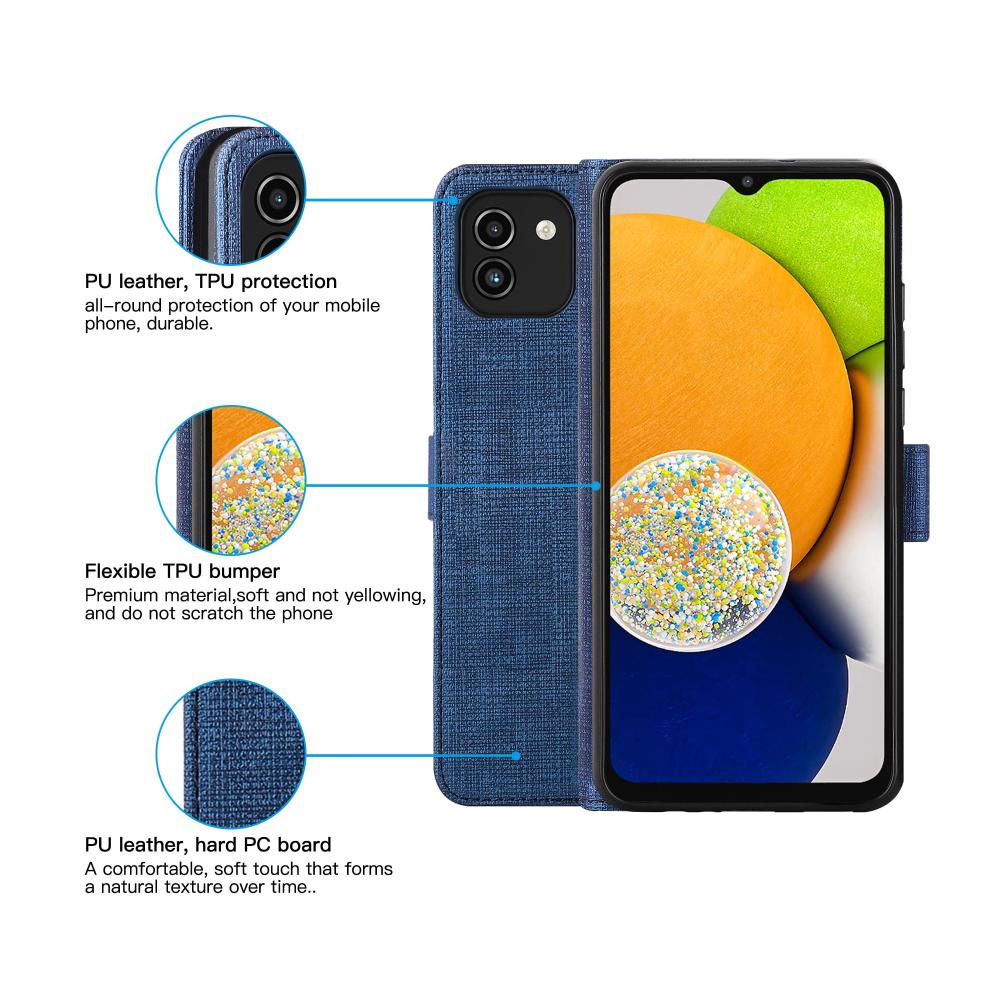 Schutzhülle für Samsung Galaxy A03 2022 über Foluu: Foluu widmet sich der Design-Philosophie der Popularisierung von Eleganz, hervorragender Verarbeitung und einfachem, aber klassischem Stil. Weniger ist mehr, Sie sind es wert. Unsere Hülle besteht aus transparentem, weichem TPU- und Canvas-Material. Es ist vereinfacht und schlank, bietet auch hervorragenden Schutz für das Xiaomi Poco X4 Pro 5G 2022. Material und Design: √Kompatibilität: Kompatibel mit Samsung Galaxy A03 2022. Farbreich und gut verarbeitet. √ Hergestellt aus umweltfreundlichem Material, weichem TPU und Segeltuch-Tagebuch. Gibt Ihnen eine völlig andere Sicht, wenn Sie mit anderen Hüllen auf dem Markt vergleichen. √ Multifunktionale Klapp-Schutzhülle schützt nicht nur Ihr Handy, sondern auch mit 3 Kartenfächern und 1 Geldfach. Sie können Karten und etwas Bargeld in die Hülle stecken. √ Magnetisches Saugdesign und sensibler Knopfausschnitt, Gehäuse magnetische Saugfunktion, einfacher zu schließen und die Erfahrung ist gut. √ Mit dem dritten Gang einstellbaren Funktions-Design, legen Sie Ihr Telefon wie Sie wollen. 100% Zufriedenheitsgarantie: Wir verpflichten uns zu 100% Kundenzufriedenheit. Unser Kundenservice-Team wird gerne kontaktieren. Wir antworten alle E-Mails innerhalb von 24 Stunden. Alle Kundeninteraktionen werden professionell und sinnvoll verarbeitet.