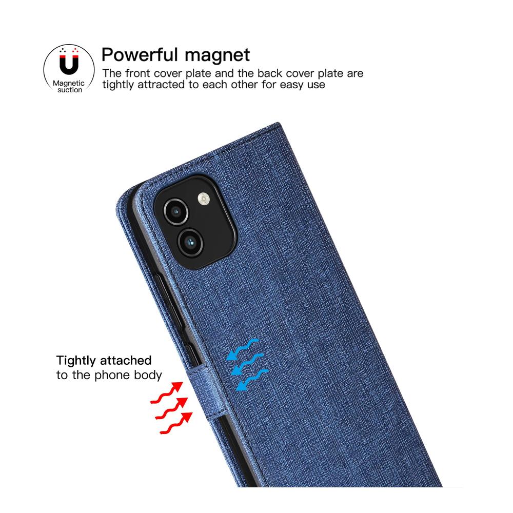 Schützen Sie Ihr Samsung Galaxy A03 2022 stilvoll mit der Foluu Klapphülle. Diese hochwertige Hülle besteht aus transparentem, weichem TPU- und Canvas-Material und bietet exzellenten Schutz vor Kratzern und Stößen. Mit 3 Kartenfächern und einem Geldfach ist sie auch funktional eine Bereicherung. Das magnetische Saugdesign und der einstellbare Ständer machen sie besonders praktisch. Überzeugen Sie sich selbst von Qualität und Funktionalität dieser Klapphülle.