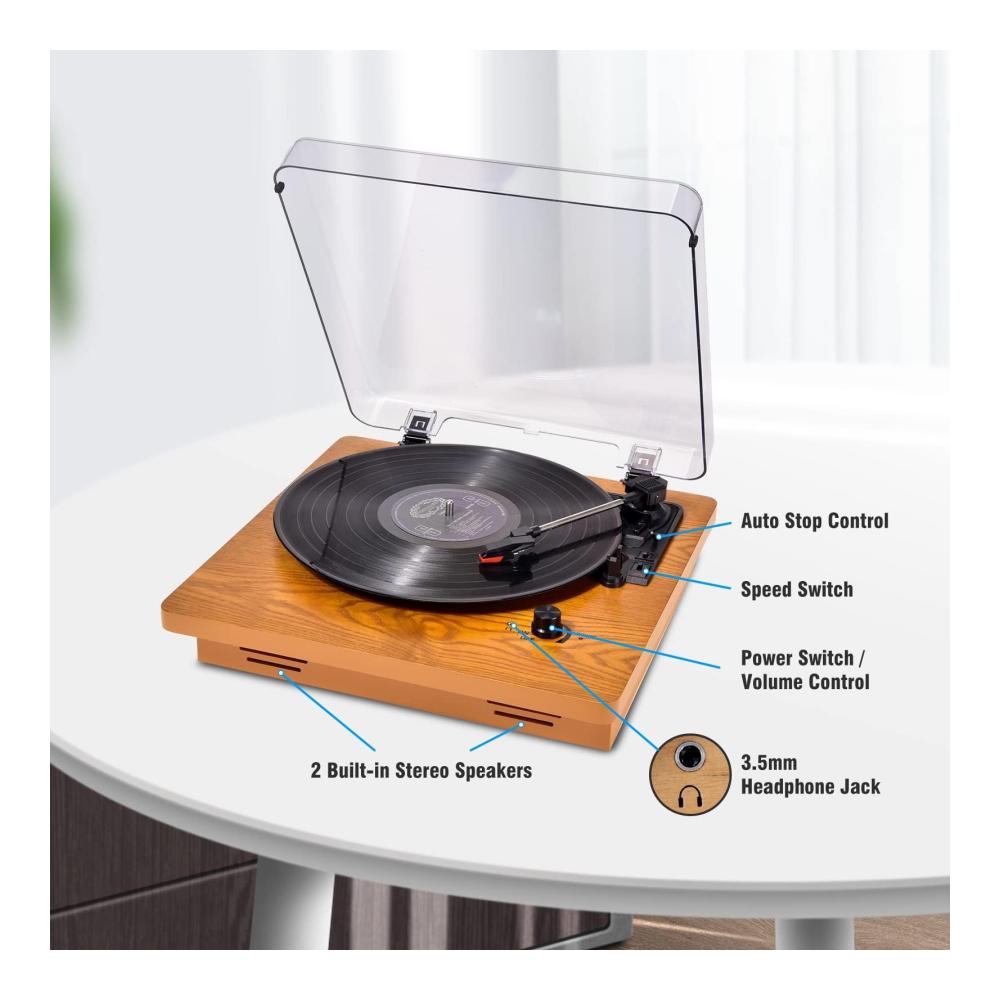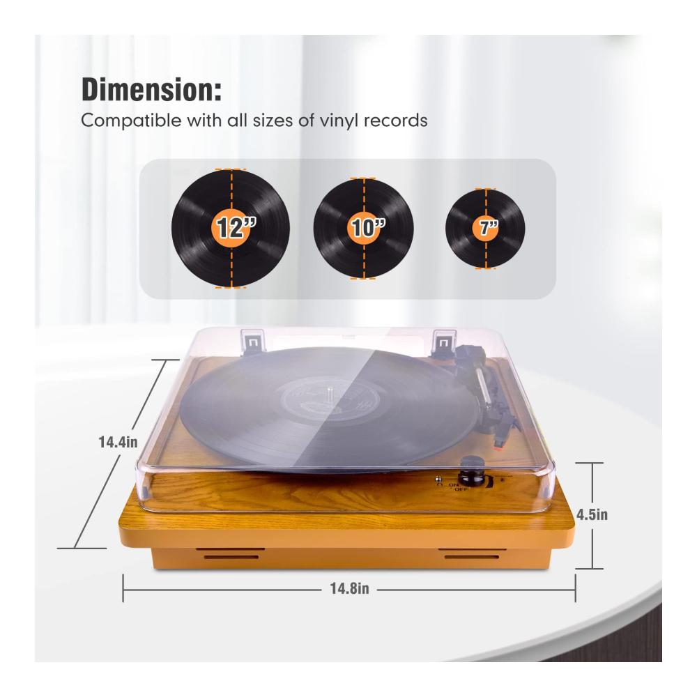 💿【3-Gang-Plattenspieler mit automatischem Stopp】Unterstützt 3 Wiedergabegeschwindigkeiten: 33-1/3, 45, 78 U/min und 7/10/12 Zoll Schallplatten oder Alben. Die Auto-Stopp-Funktion ermöglicht es dem Plattenspieler, sich automatisch zu drehen, nachdem die Schallplatte abgespielt wurde, um die Schallplatte vor übermäßigem Nadelverschleiß zu schützen.