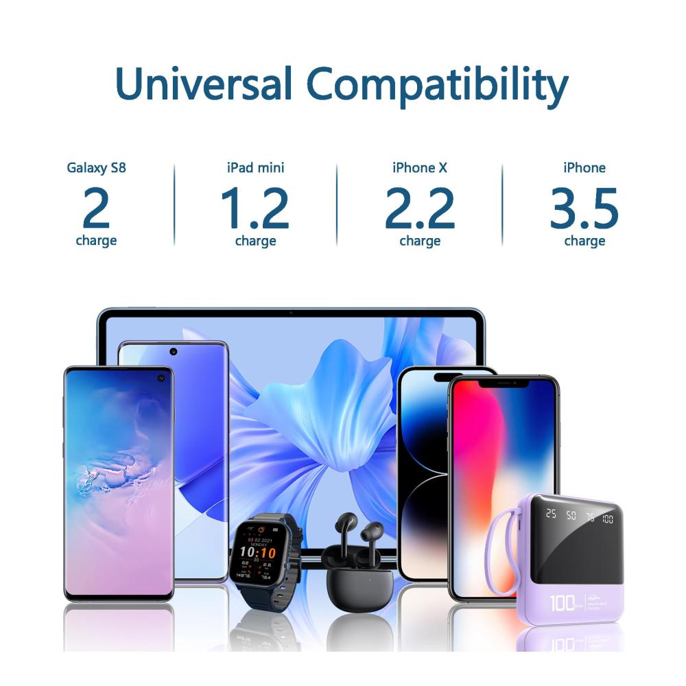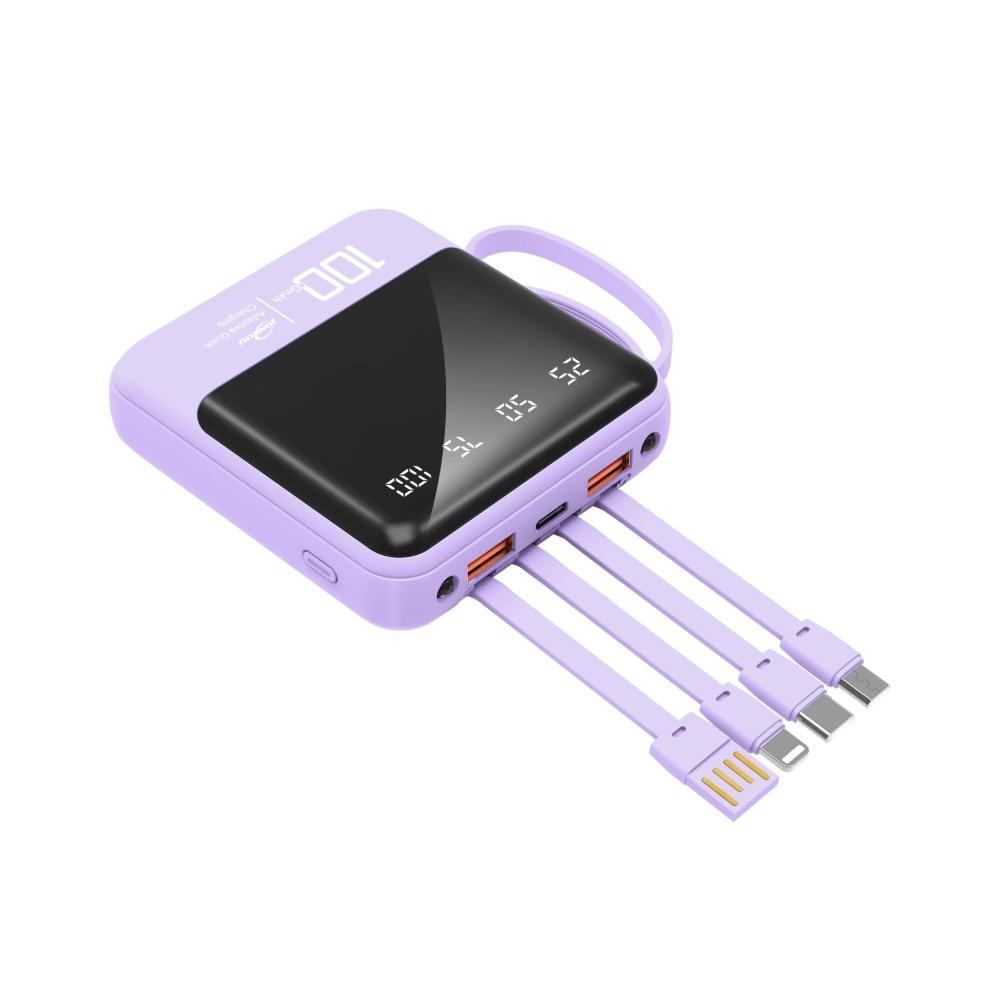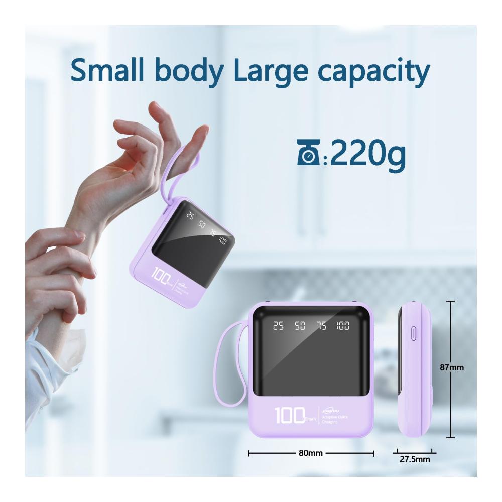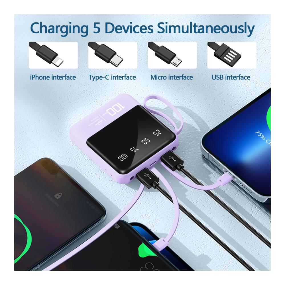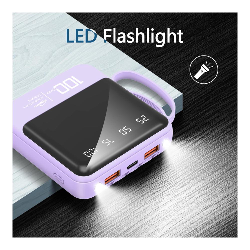 Erhalten Sie unterwegs grenzenlose Energie mit dem Tragbaren 10000mAh-Handy-Ladegerät mit integrierten Kabeln und Taschenlampe. Unsere Externe Akkus wurden entwickelt, um Ihre Geräte mit hoher Geschwindigkeit und maximaler Effizienz aufzuladen. Dank der integrierten Beleuchtungskabel und USB-C-Anschlüsse können Sie Ihre Smart-Geräte problemlos aufladen, ohne zusätzliche Kabel mit sich führen zu müssen. Die Powerbank verfügt über eine UV-Öl-Beschichtung, die sie schmutz- und verschleißfest macht, ideal für den Outdoor-Einsatz. Die integrierte Taschenlampe mit zwei LED-Leuchten bietet zusätzliche Beleuchtung für Outdoor-Aktivitäten wie Wandern und Camping. Mit einer Kapazität von 10.000 mAh bietet dieser externe Akku genug Energie für 2–3 Aufladungen Ihrer Geräte, damit Sie sich auf Ihre Reise konzentrieren können, ohne sich um leere Batterien zu kümmern. Genießen Sie Ihre Reisen ohne Stromsorgen!