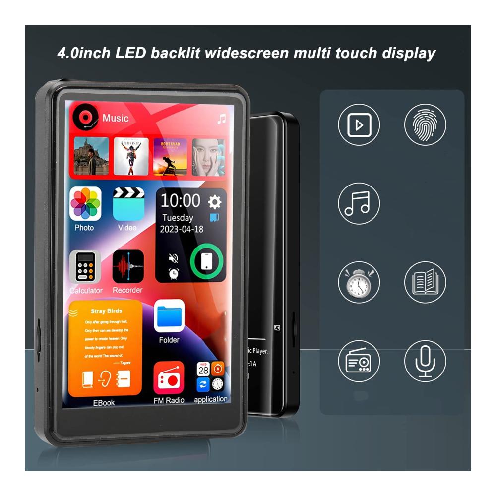 [4,0 Zoll Touchscreen]: Der MP3 Musikplayer nutzt IPS Technologie und verfügt über ein 4,0 Zoll LED Hintergrundbeleuchtungs Glanz Breit Touchscreen Display, das einfach zu bedienen ist und Ihnen ein visuelles Fest und ein interaktives Touch Erlebnis bietet.