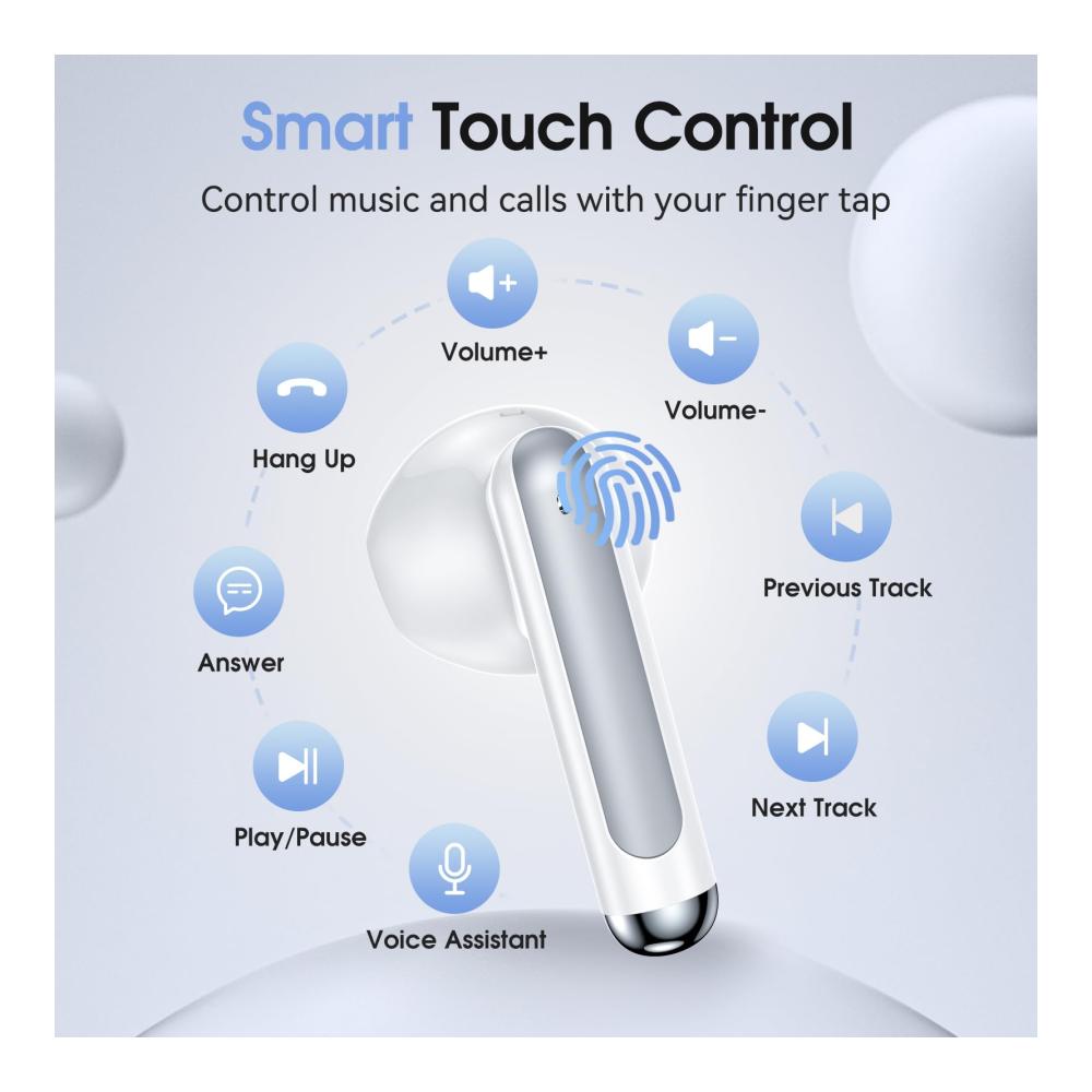 Passendes Design & Smart Touch-Steuerung: Das Halb-In-Ear-Design mit einem Winkel von 108 Grad macht die Kopfhörer bequem und stabil zu tragen. Die berührungsempfindliche Steuerung ermöglicht eine einfache Navigation durch die Einstellungen, und das ergonomische, stromlinienförmige Design sorgt für Komfort, sodass Sie beim Sport, bei der Arbeit, beim Laufen, beim Gehen oder auf Reisen ungestört Musik hören können.