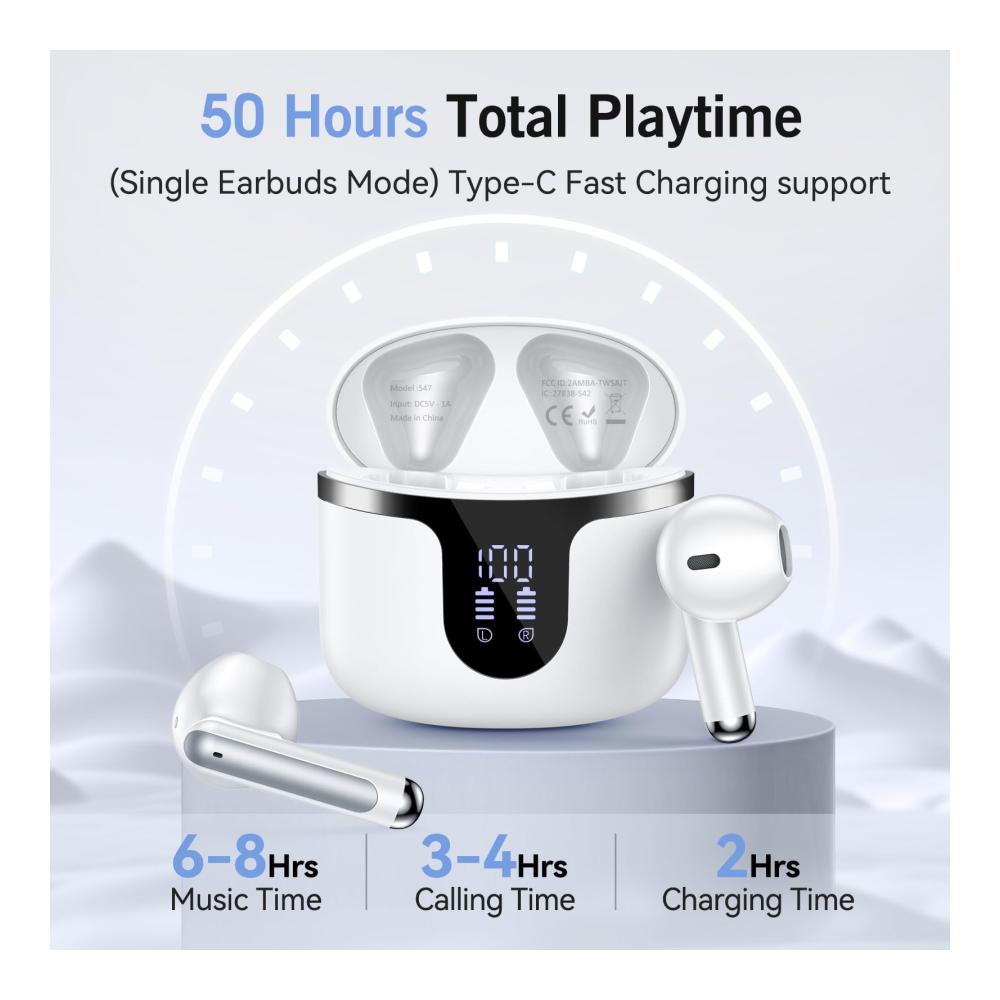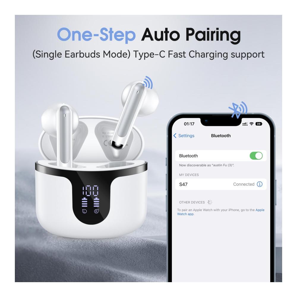 Ein-Schritt-Paarung: S47 Kabellos Kopfhörer Build in Halle Schalter, Kopfhörer Kabellos Bluetooth wird automatisch einschalten und mit Ihrem letzten Gerät verbinden, sobald Sie das Ladegehäuse nach der ersten Verbindung öffnen, die schneller und bequemer ist.