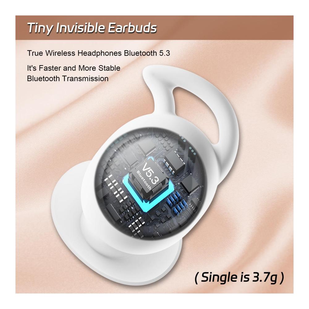 Erleben Sie ungestörten Schlaf mit den Esonstyle In-Ear-Ohrhörern für Seitenschläfer. Diese kabellosen Ohrhörer bieten eine ausgezeichnete Geräuschunterdrückung und sind speziell für kleine Ohren konzipiert. Dank ihres winzigen Designs sind sie praktisch unsichtbar und bieten maximalen Komfort beim Schlafen.