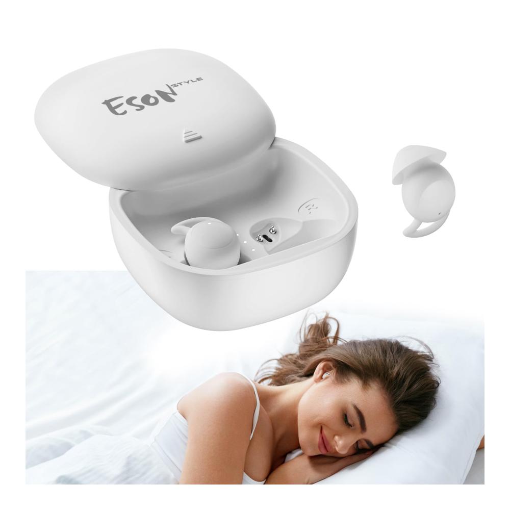 Erleben Sie ruhige Nächte mit Esonstyle Sleep Buds. Sind Sie es leid, durch externe Geräusche gestört zu werden, wenn Sie versuchen, sich zu entspannen? Unsere Schlaf-Kopfhörer mit weichen, flexiblen Silikon-Ohrstöpseln wurden entwickelt, um Ihre Ohren vollständig zu verstopfen. Diese winzigen Ohrhörer bieten eine Oase der Ruhe und isolieren Sie vor äußeren Störungen wie Schnarchen und Kindern. Sie sind Ihr perfekter Schlafbegleiter.