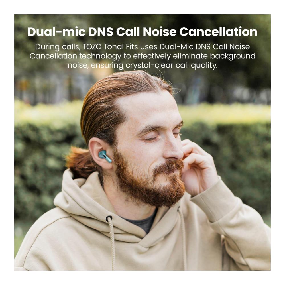 Ob Sie in einem belebten Café oder auf einer lauten Straße telefonieren, TOZO Tonal Fits sorgt dafür, dass Ihre Stimme kristallklar zu verstehen ist. Die Dual-Mikrofon-Technologie unterdrückt Hintergrundgeräusche für unübertroffene Gesprächsqualität.