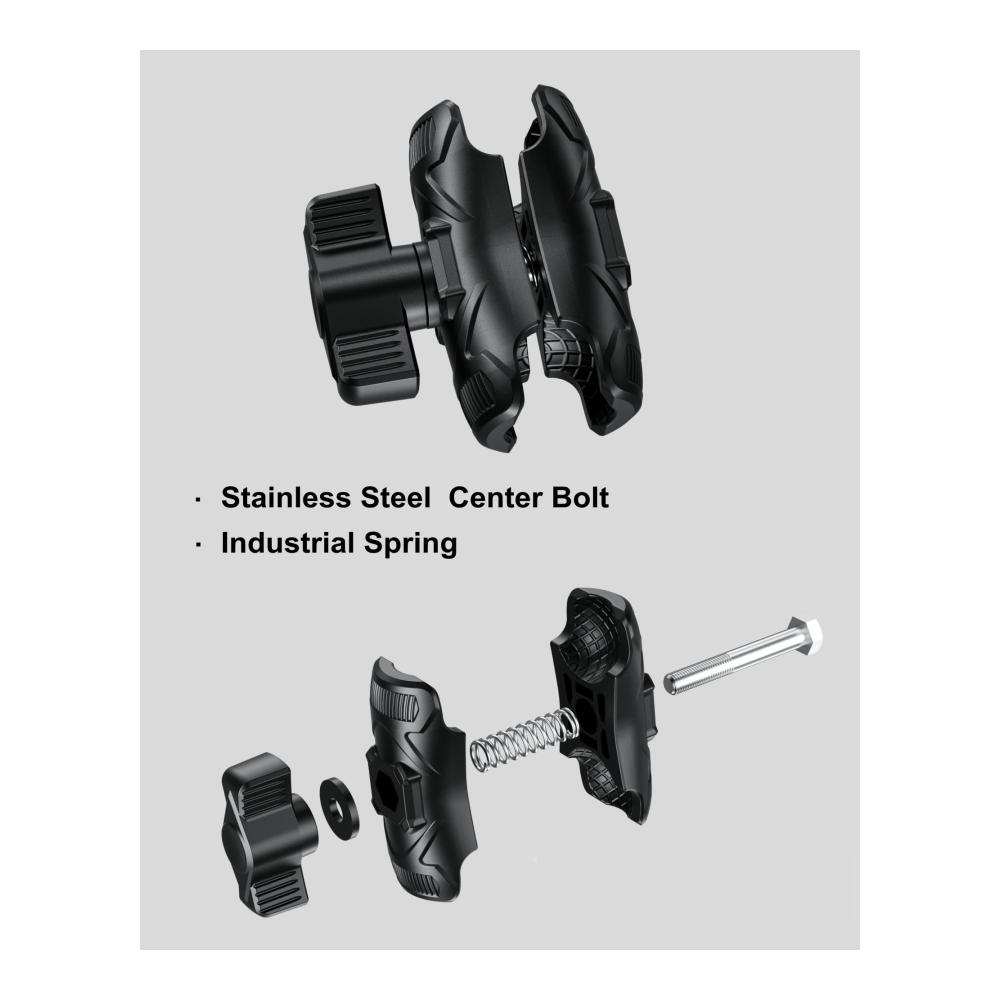 Er ist kompatibel mit RAM MOUNTS und BRCOVAN B Größe 1 Zoll Kugelkomponenten und verfügt über einen hochfesten Knopf mit Messinggewinde, der Ihre Montierung langfristig sicher hält. Die hochwertige Mittelschraube aus Edelstahl und die Industriefeder sorgen für zusätzliche Stabilität.