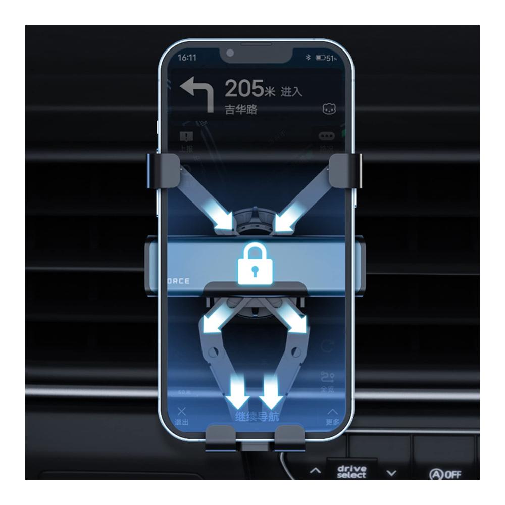 Die einziehbare Telefonklemme hält Telefon sicher und verhindert, dass während der Fahrt herunterfällt, selbst auf holprigen Straßen. Einfaches Einsetzen und Entfernen Ihres Telefons mit einer Hand.