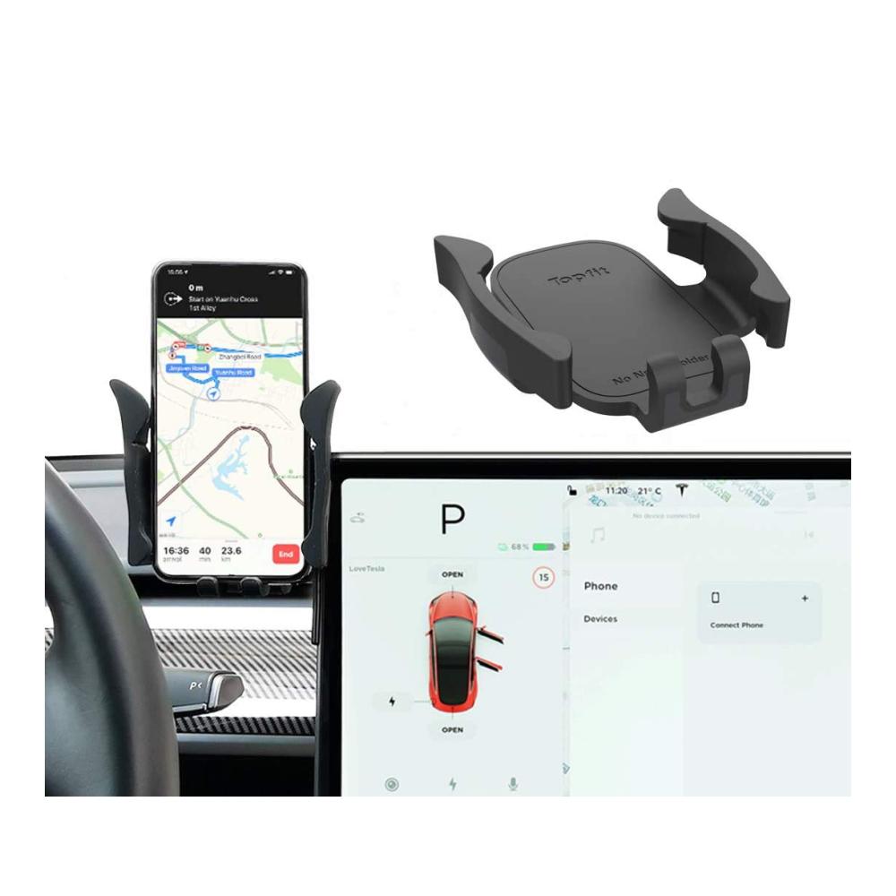 ❹ Einfache und schnelle Installation – Stecken Sie die Kunststoffabdeckung in den Bildschirm der Mittelkonsole, dann wird die Telefonmenge links und rechts von der Kunststoffabdeckung durch die Anschlusshülle fixiert. Dieses Design sorgt dafür, dass der Tesla-Besitzer mit dem Handy immer in der Nähe bleibt.