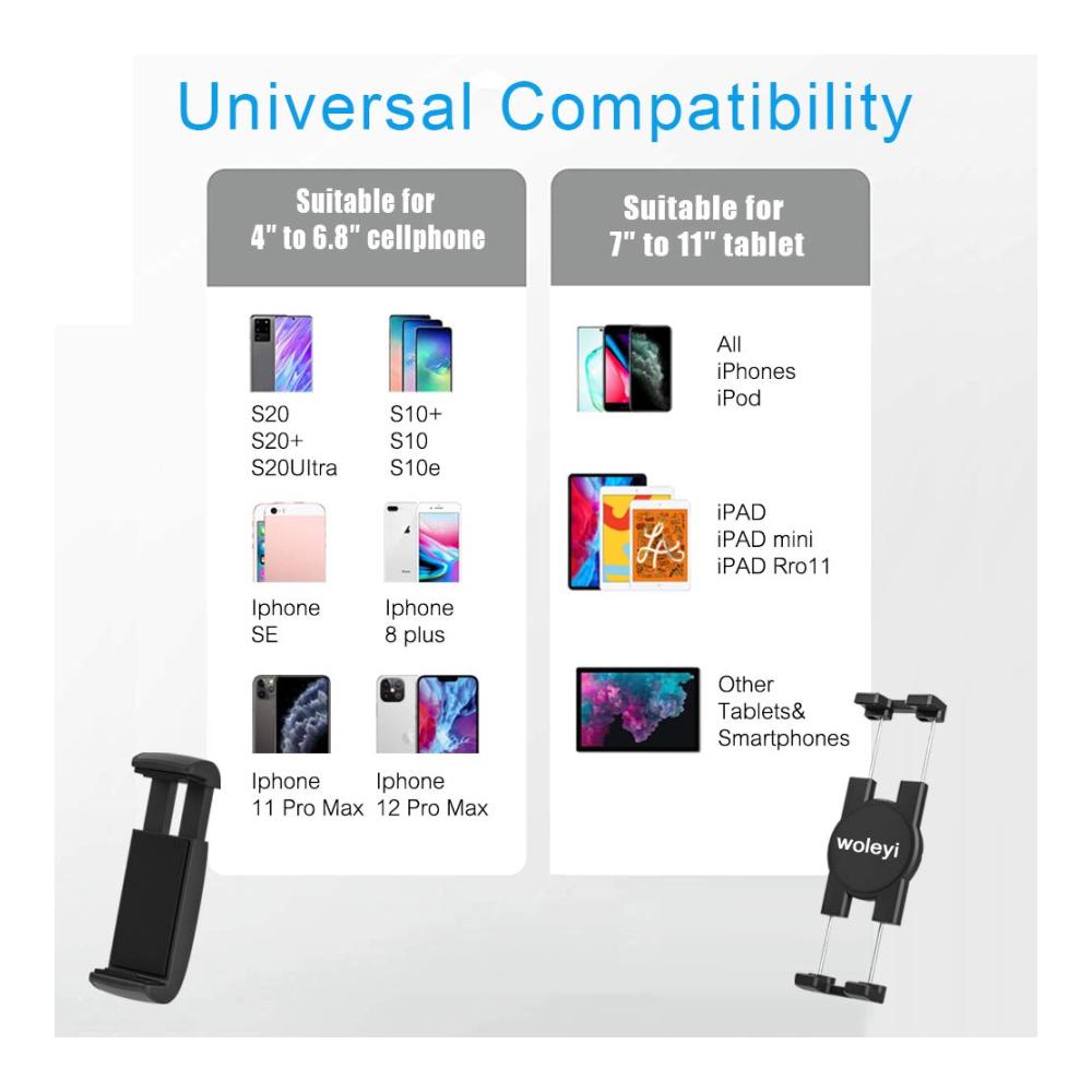 【Doppelarm / Doppelhalter】Doppelter telefonhalter nimmt kreatives design an rüsten sie eine telefonhalterung auf zwei halter auf und kombinieren sie nützlichkeit und mode, um den unterschiedlichen anforderungen gerecht zu werden. wenn sie während der fahrt zwei telefone einsetzen müssen, müssen sie keinen weiteren telefonhalter kaufen. verwenden sie einfach diesen doppelten telefonhalter, um alle ihre probleme zu lösen. 【Easy to Install】Installation des autotelefonhalters ist sehr einfach ohne die verwendung von werkzeugen, die Hände erfordern. duale autotelefonhalterung entworfen mit zwei langen armen (und flexibler länge von 21cm). Sie können die Höhe und den winkel des schwanenhals für den besten winkel einstellen. Darüber hinaus ermöglicht die vernünftige Fußstütze Lücke design sie Ihr gerät zu laden. 【Flexible 360-Grad-Drehung】Es hat zwei kugelförmige drehpunkte. die verbindung zwischen der windschutzscheibe tablet halterung und dem schwanenhals kann um 360 Grad gedreht werden. In diesem Fall können Sie den Halter an jeden Winkel anpassen, der Ihren persönlichen Bedürfnissen entspricht, und während der Fahrt in einer sicheren und bequemen haltung auf Ihr telefon, GPS oder ein anderes Gerät blicken. 【Umfassende Kompatibilität】Dieser universelle Tablet-Halter mit zwei arm für Auto ist kompatibel mit allen 4 bis 11 Zoll großen Smartphones und tablets wie dem neuen iPad Pro 9.7 / 10.5 / 11, dem iPad Air 2, Air 3, Air 4 und dem iPad Mini 1 2/3/4/5, iPhone 12, 12 Mini, 12 Pro, 12 Pro Max, 8, 8 Plus, X, XS, XR, XS Max, 11, 11 Pro / 11 Pro Max, Galaxy Tab / Galaxy Note / Galaxy S und mehr handys oder geräte. 【Voller Schutz】Auto-Telefon-Tablet-Halterung wird Ihr Gerät nicht zerkratzen oder beschädigen aufgrund der weichen Silikon gepolsterten Oberfläche.und die faltbare Unterstützung Fußstütze sorgen für problemloses Laden unterwegs. Unsere Autohalterung für Dual Handy oder Tablet von Woleyi ist die perfekte Lösung für Ihre Handy KFZ Halterungen Bedürfnisse. Die flexible 360-Grad-Drehung ermöglicht es Ihnen, Ihr Gerät in den optimalen Blickwinkel zu bringen, während die einfache Installation ohne Werkzeug Ihnen Zeit und Mühe spart. Mit umfassender Kompatibilität für eine Vielzahl von Geräten von iPad Pro bis Galaxy Tab und iPhone, sowie vollständigem Schutz dank weicher Silikonpolsterung, ist diese Halterung ein Must-Have für unterwegs.