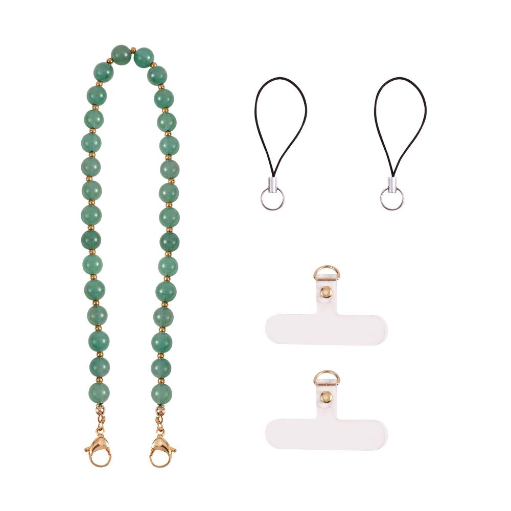 Menge: 1 Stück Schlüsselband aus Steinperlen mit Verschluss, 2 Stück Kordelschlaufen, 2 Stück Verbindungsstück
