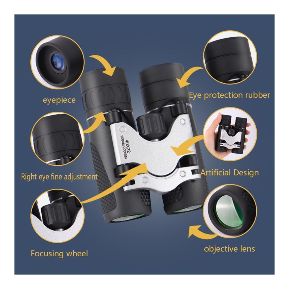 Das solide, langlebige Gehäuse mit gummibeschichteter Oberfläche sorgt für einen festen Griff und ist auch für raue Umgebungen geeignet. Das zentrale Fokussystem ermöglicht eine schnelle und präzise Fokussierung, während das Fernglas vielseitig einsetzbar ist, ob beim Wandern, Jagen oder Konzertbesuchen.