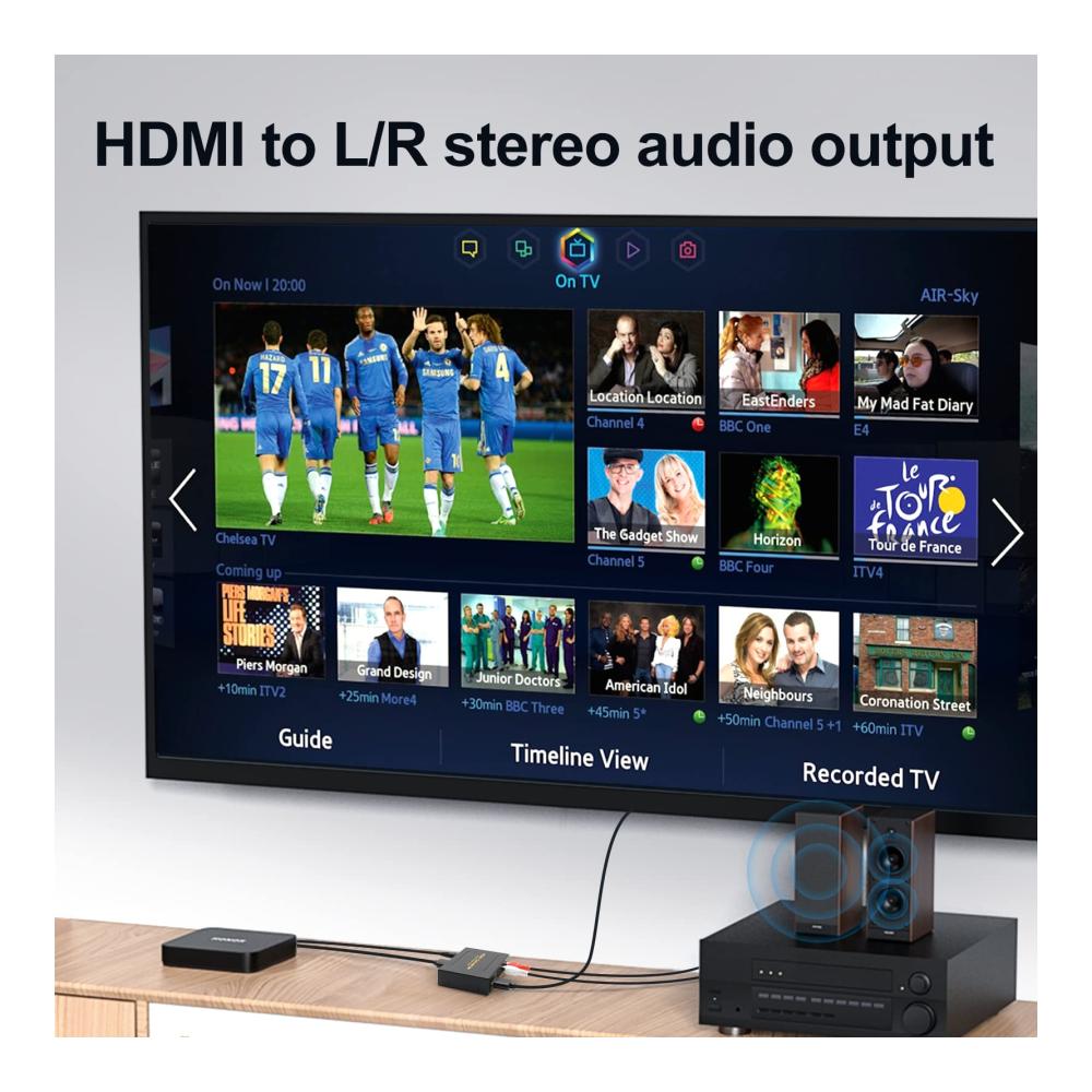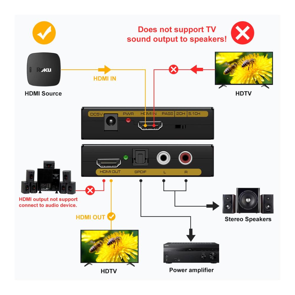 Dieser HDMI Audio Splitter ist ideal für verschiedene HDMI-Quellgeräte wie Roku, Chromecast, Blu-ray/DVD/HD-Player, Kabel-/Satelliten-TV-Boxen, Amazon Fire TV, PS3/4, Xbox, PC/Laptops, High-Definition-Kameras und -Recorder.