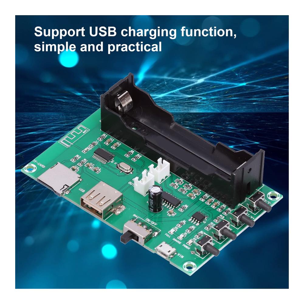 Diese zweikanalige Audio-Leistungsverstärkerplatine unterstützt die USB-Ladefunktion, einfach und praktisch. Unterstützt die -Akku-Stromversorgung, sorgt für eine lange Lebensdauer, sodass Sie sie lange verwenden können.