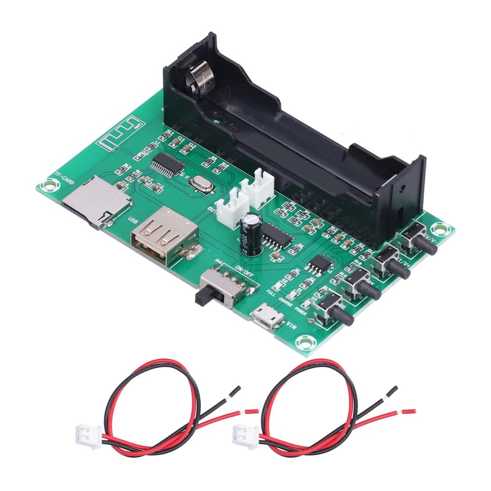 Verwendung: 1. Installieren Sie zuerst die Lithiumbatterie und achten Sie darauf, die positiven und negativen Pole zu unterscheiden! (Die Batterie müssen Sie selbst kaufen). 2. An den Lautsprecher sind zwei Drähte angeschlossen, das rote ist der Pluspol und das schwarze ist der Minuspol. 3. Legen Sie die Speicherkarte mit der Songdatei ein in den Speicherkartensteckplatz oder legen Sie die U-Disk mit der Songdatei in die USB-Schnittstelle ein. (BT-Link ist ebenfalls verfügbar, aber Sie müssen das Gerät einschalten, bevor Sie eine Verbindung zu BT herstellen). 4. Einschalten Wenn Sie den Netzschalter drücken, wird Ihre Speicherkarte oder U-Disk automatisch gelesen und mit der Wiedergabe von Songs begonnen. Wenn die Speicherkarte und die U-Disk gleichzeitig installiert sind, wird die Speicherkartendatei gelesen und standardmäßig gesendet. (Wenn Sie Songs auf dem USB-Flash-Laufwerk übertragen möchten, können Sie zum Umschalten die Playlist-Taste drücken.) 5.① Die Taste ist die Taste zum Umschalten der Playlist. Sie können Songs auf der Speicherkarte oder der U-Disk abspielen, aber die BT-Linkliste kann nicht umgeschaltet werden und Sie müssen die Speicherkarte und die U-Disk entfernen. 6. ② Die Taste ist die Wiedergabe-Pause-Taste, drücken Sie Einmal drücken, um zu pausieren, und einmal drücken, um abzuspielen. 7.③Die Taste kann entweder die Song-Cut-Taste oder die Lautstärketaste sein. Durch kurzes Drücken wird das vorherige Lied abgespielt, durch langes Drücken wird die Lautstärke erhöht. 8. ④ Die Taste kann die Song-Cut-Taste oder die Lautstärketaste sein. Ein kurzer Druck ist das nächste Lied des Senders, und der Cangan soll die Lautstärke erhöhen. Technische Datenifikation: Zweck: Für DIY-Entwicklung, Lernen, Testen Chip-Modell: PAMB403 Übertragungsentfernung: Bis zu 20 m (ohne Hindernisse) Stromversorgungsspannung: 5 V (Mikroeingang) Anzahl der Kanäle: 2