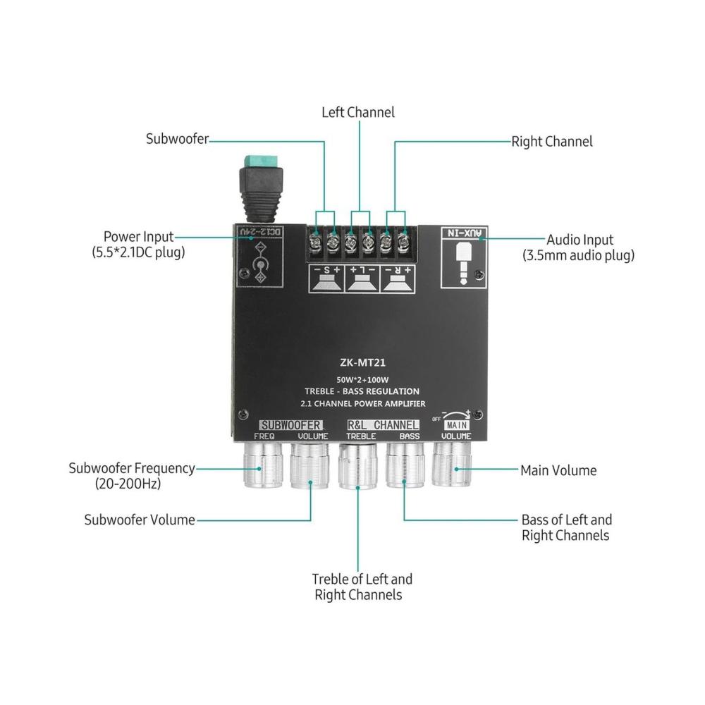 1. Eingang und Ausgang: Die Leistungsverstärkerplatine unterstützt den AUX BT Tonquelleneingang und unterstützt den Subwoofer linken und rechten Kanalausgang.2. Einfache Installation: Die Stereo Leistungsverstärkerplatine ist einfach zu installieren und zu verwenden und bietet Ihnen eine stabile und schnelle Verbindung sowie umfassende Kompatibilität.3. Einstellbar: Dieser Klangverstärker reicht aus, um Ihren unterschiedlichen Anforderungen gerecht zu werden. Sie können Frequenz, Lautstärke, Höhen, Bässe usw. einstellen.4. Schutzfunktion: Die Hochleistungsverstärkerplatine verfügt über einen Verpolungsschutz, einen Überhitzungsschutz, einen Überstrom- und einen Kurzschlussschutz.5. Hohe Leistung: Die BT Verstärkerplatine 2.1 Kanal, BT 5.0, Subwoofer, hohe Leistung, Stereo, geeignet für 15–100 W, 4–8 Ω Lautsprecher.Spezifikation:Artikeltyp: Leistungsverstärker PlatineMaterial: PCBArbeitsspannung: DC12 24VBT Version: 5.0Eingangsempfindlichkeit: 500 mVToneingang: BT AuxAnzahl der Kanäle: 2.1 KanäleAusgangsleistung: 2 x 50 W (linker und rechter Kanal) 100 W (Subwoofer)Anwendbare Lautsprecher: 15–100 W, 4–8 ΩPackliste: 1 x Verstärkerplatine1 x Abdeckung1 x Bodenplatte1 x Adapter1 x Schraubendreher5 x Knopfabdeckung9 x Schraube4 x kurze Schraubsäule4 x lange Schraubsäule