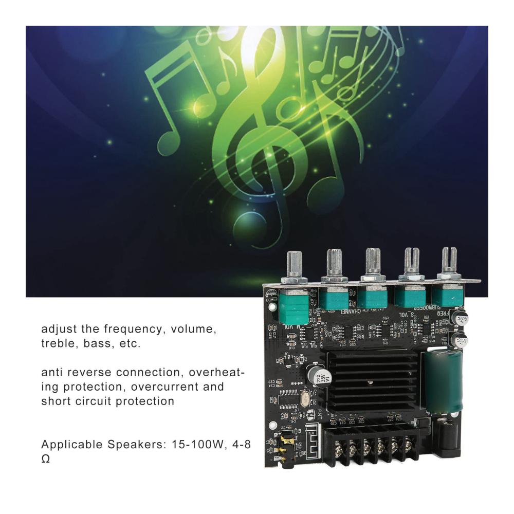 Hohe Leistung: Die BT Verstärkerplatine 2.1 Kanal, BT 5.0, Subwoofer, hohe Leistung, Stereo, geeignet für 15–100 W, 4–8 Ω Lautsprecher.