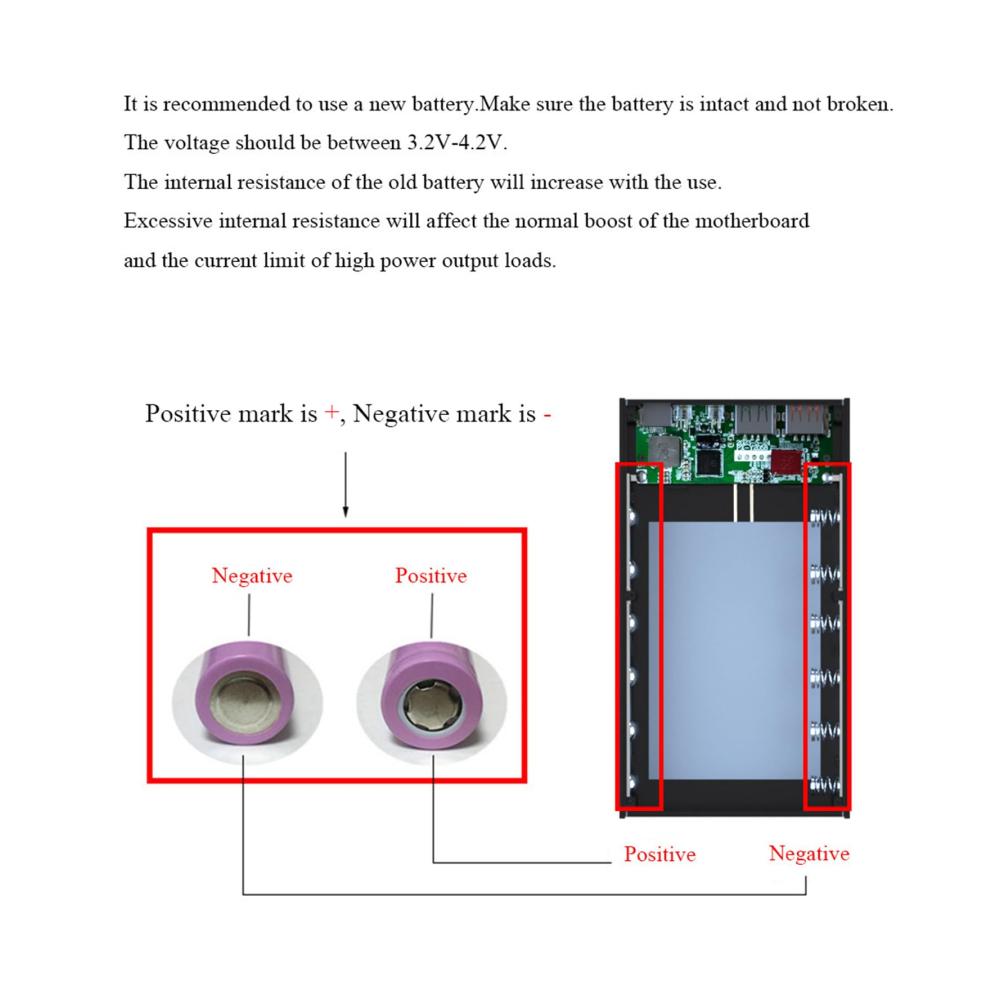 Tragbare DIY Box mit Quick 6×18650-Halterung, abnehmbarem Gehäuse, Außenschalen, Quick BoxMerkmale:Die 6×18650-Aufbewahrungsbox ist ein Muss für Heimwerker und ermöglicht Ihnen, einfach Ihre eigene Aufbewahrungsbox zu erstellen.Diese Aufbewahrungsbox verfügt über eine schnelle Stromversorgung von 5 V 3 A, 9 V 2 A und 12 V 1,5 A und sorgt so für ein schnelles und effizientes Ihrer Geräte.Diese für alle Benutzer konzipierte Halterbox ist mit 18650-Flat Top Batterien kompatibel und bietet eine zuverlässige und praktische Stromversorgungslösung für jedermann.Egal, Sie auf Reisen oder bei der Arbeit sind, diese Tasche ist perfekt für jede Situation, in der Sie eine tragbare und zuverlässige Stromquelle benötigen.18650-Batterien sind nicht Lieferumfang enthalten und müssen separat erworben werden. Kann nur den 18650 verwenden, dessen positive Elektrode oben flach ist.Spezifikationen:Material: KunststoffAnzahl der Batterien: 6×18650 BatterienFarbe: Schwarz, Weiß;Optionstyp: CX6 Black Power Case, CX6 PD Black Bank Case, CX6 PD Black Power Case, CX6 White Power Case, CX6 PD White Power Case, CX6 PD White Power Case,CX6 Power Case mit Lichtausgang/Eingang: 5V2,1ACX6 PD Power Case Ausgang: 5V3A, 9V2A, 12V1,5A, 5V4,5A;CX6 PD Stromgehäuseeingang: 5V3A, 9V2A, 12V1,5ACX6 PD Power Case unterstützt 15 W Aufladung;CX6 PD Power Case Ausgang: 5V3A, 9V2A, 12V1,5A, 5V4,5A;CX6 PD Stromgehäuseeingang: 5V3A, 9V2A, 12V1,5ACX6 PD Power Case unterstützt 15 W Aufladung;Paket beinhaltet:1 x Powerbank Hülle (nicht Lieferumfang enthalten).Notiz:Bitte erlauben Sie 1-2 cm Fehler aufgrund der manuellen Messung. Bitte stellen Sie sicher, dass Sie nichts dagegen haben, bevor Sie bestellen.Aufgrund des Unterschieds zwischen verschiedenen Monitoren spiegelt Bild möglicherweise nicht die tatsächliche Farbe des Artikels wider.
