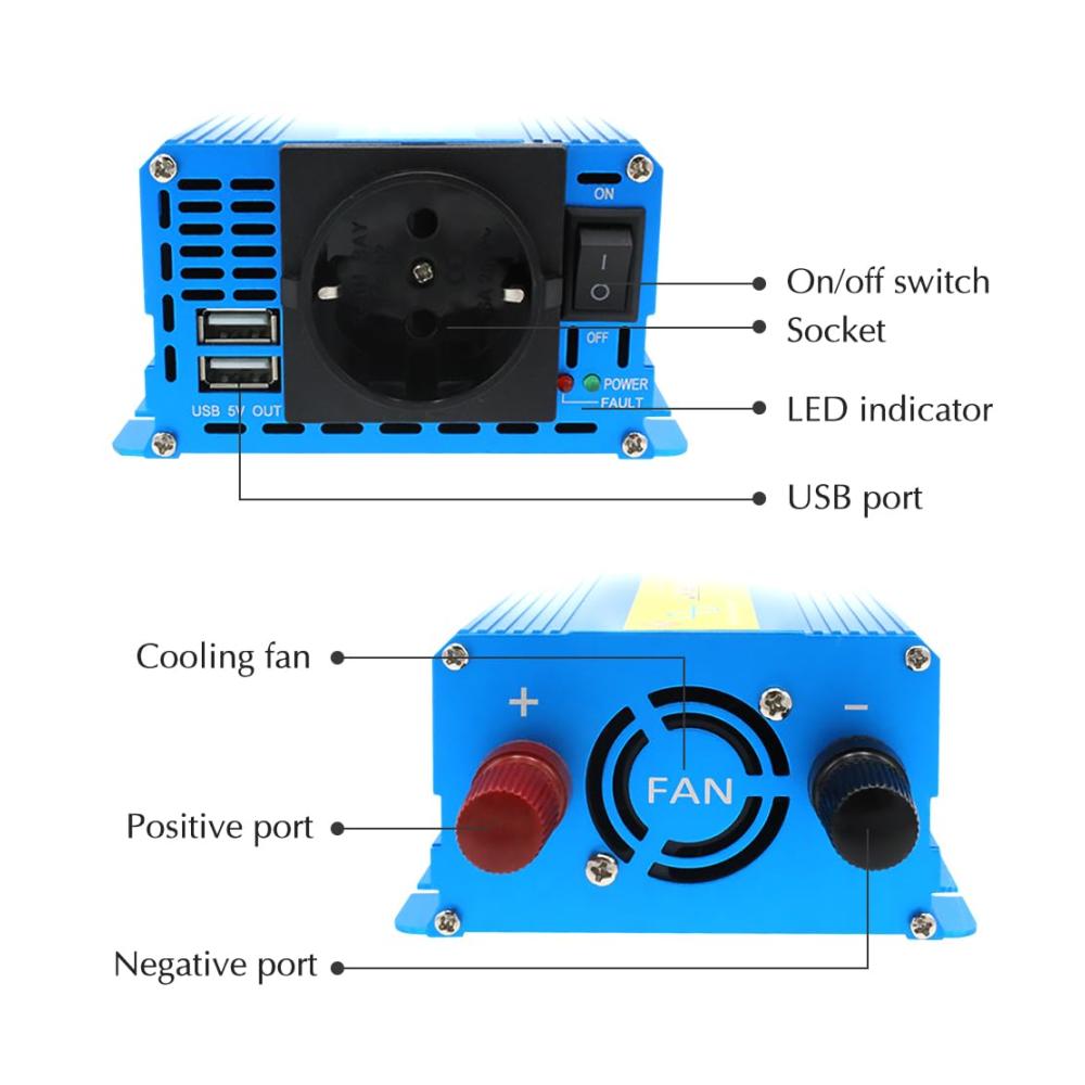 Be the first to review “Hocheffizienter 400W/800W Reiner Sinus-Wechselrichter Umwandlung von DC 12V in 230V AC 1 EU Steckdose & 2 USB Ports für vielseitige Anwendungen” Antworten abbrechen