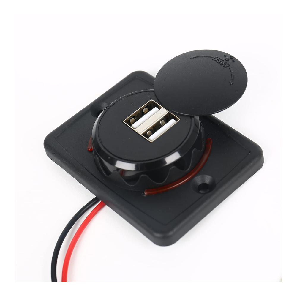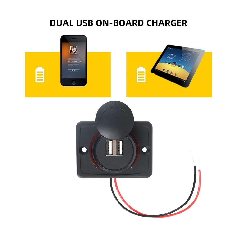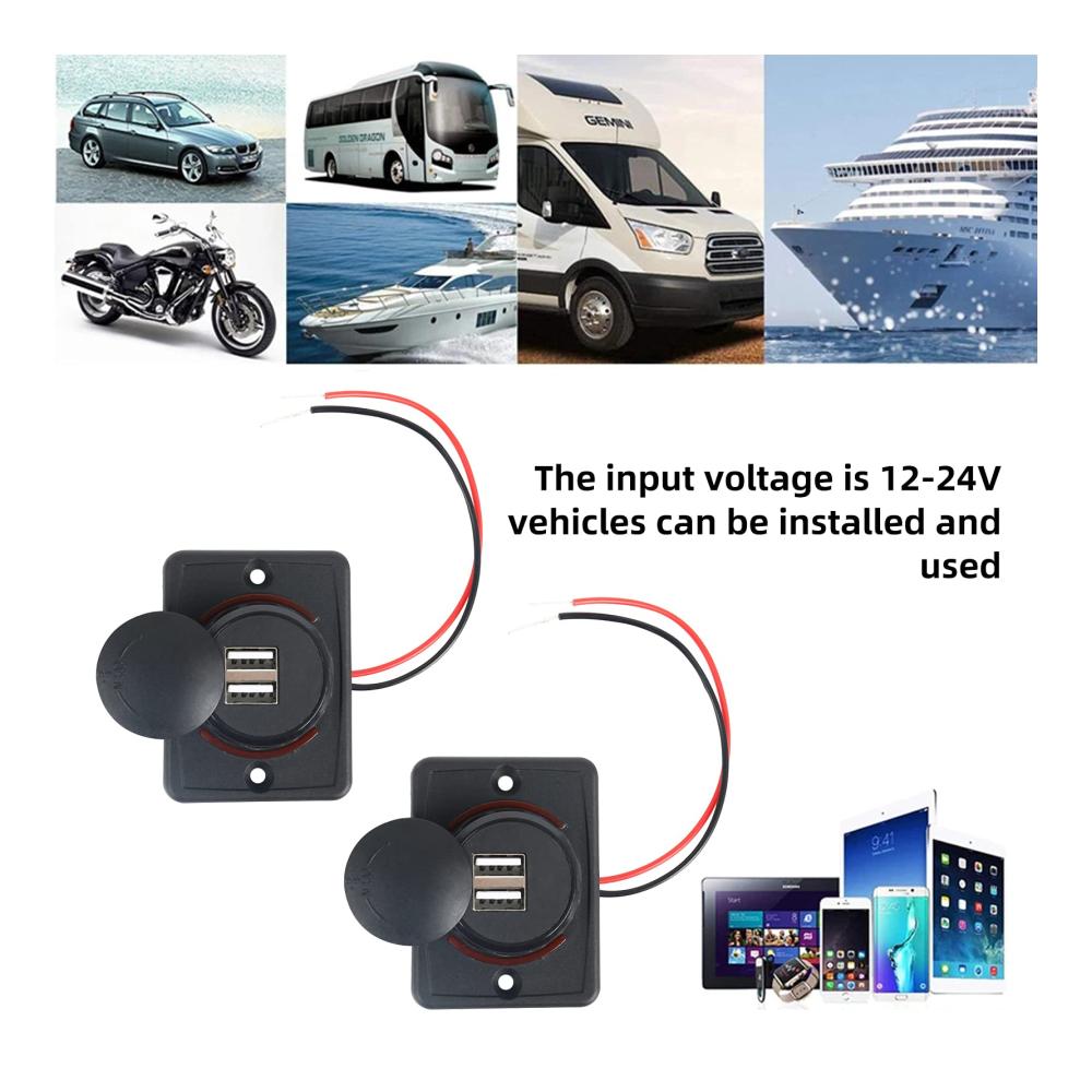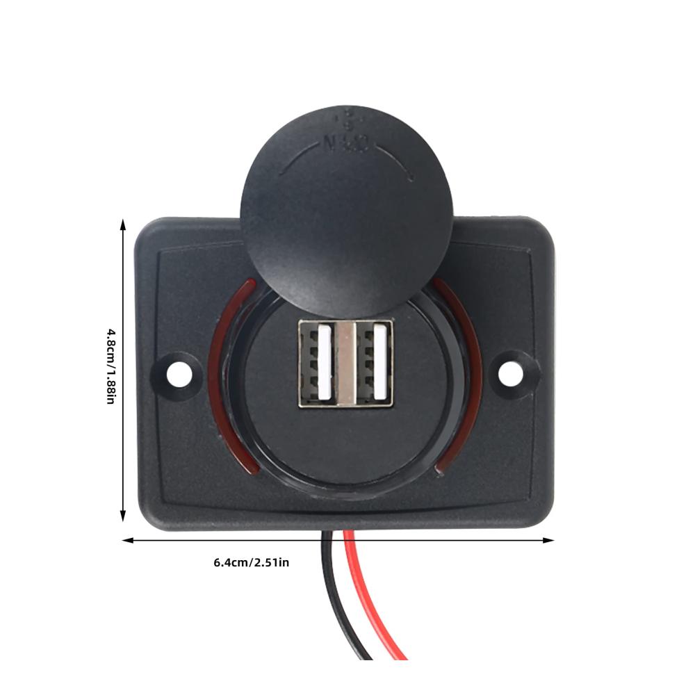 Erhalten Sie eine zuverlässige Ladestromquelle für unterwegs mit diesem hochwertigen Kfz-Ladegerät. Hergestellt aus glasfaserverstärktem Nylon für Stärke und Langlebigkeit. Die wasserdichte Abdeckung schützt vor Staub und Feuchtigkeit, während intelligente Ladetechnologie eine schnelle Aufladung gewährleistet. Ein integrierter Chip verhindert Schäden an Ihren Geräten, und die einfache Installation macht es zum idealen Begleiter für unterwegs. Mit zwei USB-Anschlüssen ist es perfekt für Fahrzeuge, Boote und mehr geeignet.