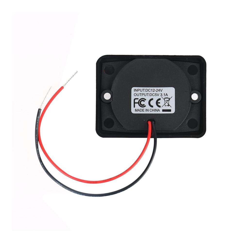 Spezifikation: Größe:6.4cm*4.8cm USB-Anschluss:2 Eingangsspannung:DC12-24V Ausgangsspannung:DC5V Ausgangsstrom:3,1A Farbe:Schwarz Material:glasfaserverstärktem Nylon Packliste: 2 * 3,1A Doppel USB 2 Anschluss Ladegerät 4 * Schrauben