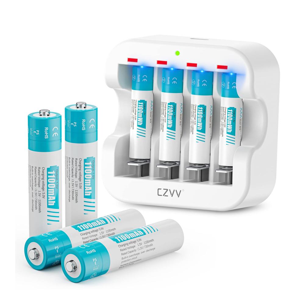 czvv 1.5V AAA Rechargeable Batteries with Charger,8 Pack