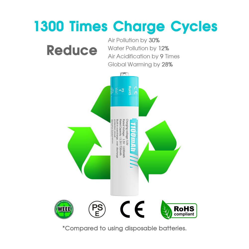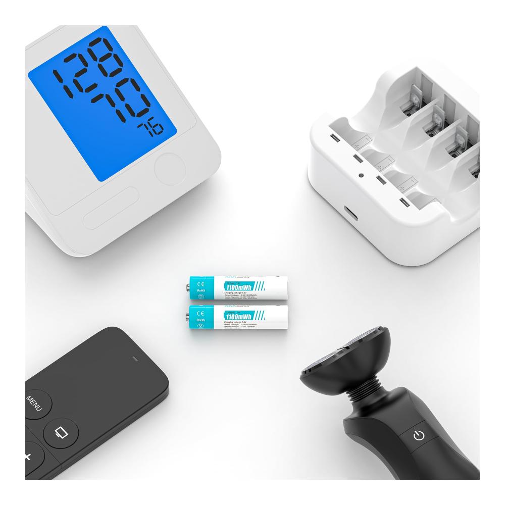 Unser hocheffizientes Ladegerät für Haushaltsbatterien ist mit hochwertigen wiederaufladbaren AAA Lithium-Batterien ausgestattet, die eine Kapazität von 1100mWh bieten und bis zu 1300 Ladezyklen ermöglichen. Dank des aktualisierten Ladegerätdesigns können Sie jetzt gleichzeitig bis zu vier Batterien laden und dabei die Ladezeit um mindestens 44% reduzieren. Mit einem konstanten Ausgang und geringer Selbstentladung garantieren unsere Batterien eine verlängerte Lebensdauer für Geräte wie Fernbedienungen und elektrische Rasierer. Die Smart LED-Anzeige informiert Sie über den Ladezustand, während die einzigartige 1%-Rate sicherstellt, dass unsere Batterien auch nach 36 Monaten noch 80% ihrer Kapazität behalten. Mit unserem Set erhalten Sie 8 AAA-Batterien, ein tragbares Ladegerät, ein Lightning-Typ-C-Kabel sowie eine 12-monatige Garantie und Kundenservice. Verabschieden Sie sich von Einwegbatterien und investieren Sie in unsere zuverlässigen, umweltfreundlichen wiederaufladbaren Batterien und Ladegeräte für den täglichen Gebrauch!