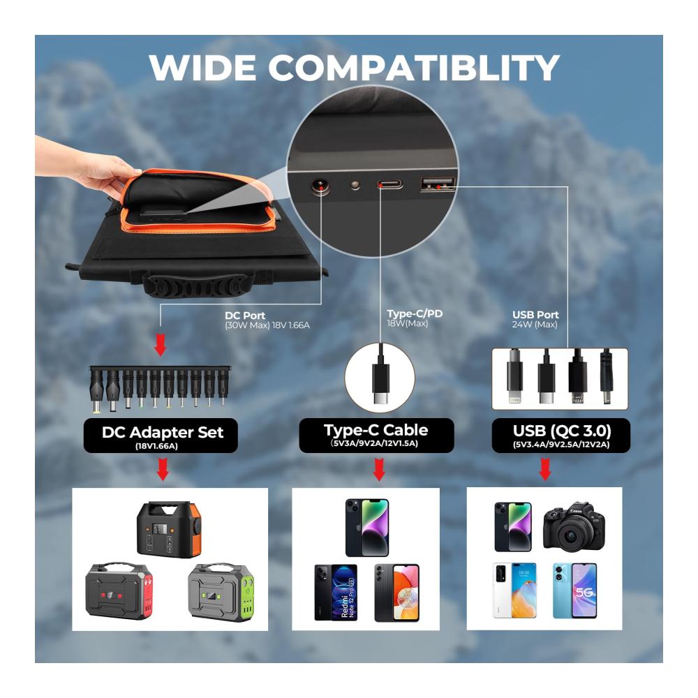 🚀Schnelles Aufladen: Upgraded Mesuvida ist mit einem QC 3.0-Anschluss (24W) ausgestattet, It&39; braucht nur die Hälfte der Zeit, um vollständig aufzuladen Samsung und Xiaomi als ein normaler USB (5V/2.4A). {Intelligente IC-Technologie erkennt automatisch die Protokolle der angeschlossenen Geräte und gewährleistet die schnellstmögliche Ladegeschwindigkeit. } 🔋Weite Kompatibilität: Unser PD-Port (18W) lädt das iPhone 1,5 mal schneller als andere, die nur mit 2 USB-Ports (5V 2,4A) ausgestattet sind, seine 18V max DC-Ausgang und 10*DC-Adapter gelten für fast alle 12-18V-Stationen auf dem Markt, empfohlen, um ≤100Wh Kraftwerk aufgrund der Einschränkungen des Sonnenlichts zu laden. 💼Einfach zu transportieren: Das gefaltete Solarpanel sieht aus wie eine Laptoptasche und lässt sich durch den mitgelieferten Griff oder Schultergurt leicht tragen. Die Aufbewahrungstasche mit Reißverschluss kann die Anschlussdose besser vor Spritzwasser oder Staub schützen, wenn sie im Freien ist. Und kann verhindern, dass das Telefon aus der Aufbewahrungstasche fällt. 🌞Hocheffiziente Solarzellen: Hergestellt aus hochdichtem monokristallinem Silizium, Der mitgelieferte Ständer ermöglicht es, das Solarpanel in einem Winkel von 45° zu platzieren, um die Umwandlung von Sonnenlicht zu maximieren. 3 Paneele können unabhängig voneinander als paralleles Design arbeiten. Selbst wenn eines beschädigt ist, funktionieren die beiden anderen. 💯Dauerhaft & Garantie: Eingebautes intelligentes Schutzsystem schützt Ihr Gerät vor Überladung und Überlastung, um eine lange Lebensdauer zu gewährleisten. IPX4 verhindert die Beschädigung des Panels durch Regentropfen. HINWEIS: Wir bieten eine 18-monatige Garantie und einen 24-Stunden-Kundenservice. Erhalten Sie mit dem tragbaren Solarladegerät von Mesuvida eine zuverlässige Stromversorgung, egal wo Sie sind. Mit einem QC 3.0-Anschluss für schnelles Aufladen und einem PD-Port für iPhone und andere Geräte bietet dieses Ladegerät hohe Kompatibilität und Leistung. Das faltbare Solarpanel ist leicht zu transportieren und effizient, dank hochdichtem monokristallinem Silizium. Mit einem intelligenten Schutzsystem und IPX4-Wasserdichtigkeit ist es langlebig und zuverlässig, perfekt für unterwegs.
