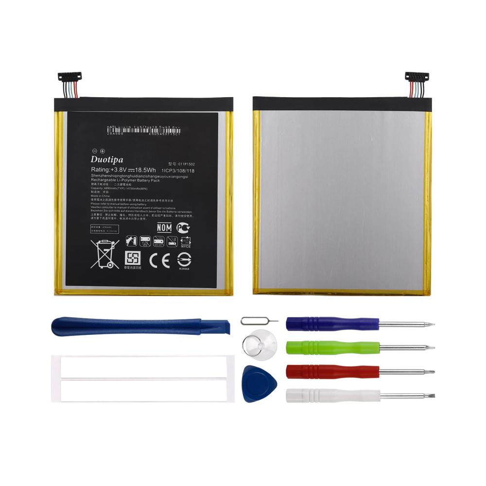 Produktspezifikationen:Modell:C11P1502 Batteriekapazität:4890mAh Batterietyp: Lithium-Ionen-PolymernSpannung: 3.85V Wattstunde:18.5Wh Kompatible Modelle ZenPad 10 10.1 Z300C Z300M Z300CG Z300CL P023 P01T: Paket beinhaltet: : 1 x Akku,1 x Werkzeuge Tipps zur Installation1 Sehen Sie sich vor der Installation das YouTube-Anleitungsvideo an. Link: https://www.youtube.com 2.Vor der Installation muss das Telefon ausgeschaltet sein. Wenn es nicht richtig gehandhabt wird, kann es das Telefon beschädigen. Einige kleine Kenntnisse über Batterien:1.Bei längerem Gebrauch oder unsachgemäßer Wartung der Batterie ist es Metallkontakte werden oxidiert. Dadurch wird das Telefon während eines Anrufs automatisch heruntergefahren oder getrennt. Es wird empfohlen, die Kontakte vor dem Gebrauch sauber zu wischen. 2 Minderwertige Ladegeräte und falsche Ladezeitmethoden wirken sich auf die Standby-Zeit und die Akkulaufzeit aus.3.Wenn der Akku vollständig aufgeladen ist und nicht verwendet wird, kann dies zu natürlichen Schäden führen Stromausfall und Verkürzung der Akkulaufzeit. Wenn Sie den Akku längere Zeit aufbewahren müssen, verwenden Sie bitte die photoelektrische Energie, um ihn zu sparen.4.Die Umgebungstemperatur hat einen großen Einfluss auf die Akkukapazität und die Nutzungsdauer. Die von der Batterie bei niedriger Temperatur freigesetzte ionisierte Energie ist viel geringer als bei normaler Temperatur. Wenn Sie im Winter im Norden im Norden Mobiltelefone verwenden, ist die Standby-Zeit daher viel kürzer. Niedrigtemperaturentladung ist klein, Hochtemperaturentladung ist groß, hohe Temperatur beeinflusst auch die Standby-Zeit.5.Es wird empfohlen, das Original-Ladegerät oder ein zuverlässiges Ladegerät zum Laden des Akkus zu verwenden.