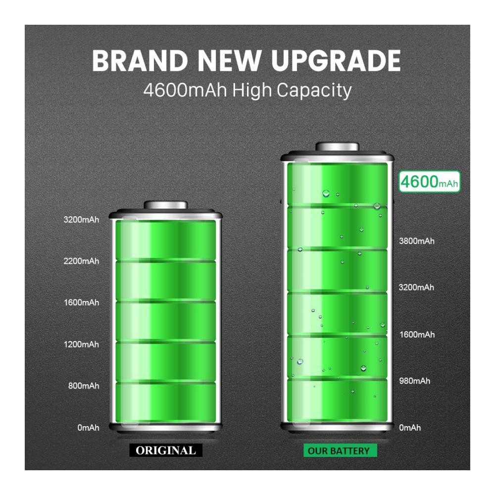 【Erweitern Sie die hohe Kapazität】 4600 mAh Hochleistungs-Ersatzbatterieleistung mehr als die Originalbatterie. Die Kapazität der brandneuen 0-Zyklus-Batteriezelle wird verbessert, um mehr Energie zu speichern, mehr Standby-Zeit zu bringen, die Batterielebensdauer zu verlängern und Ihre Ladezeiten zu verkürzen.