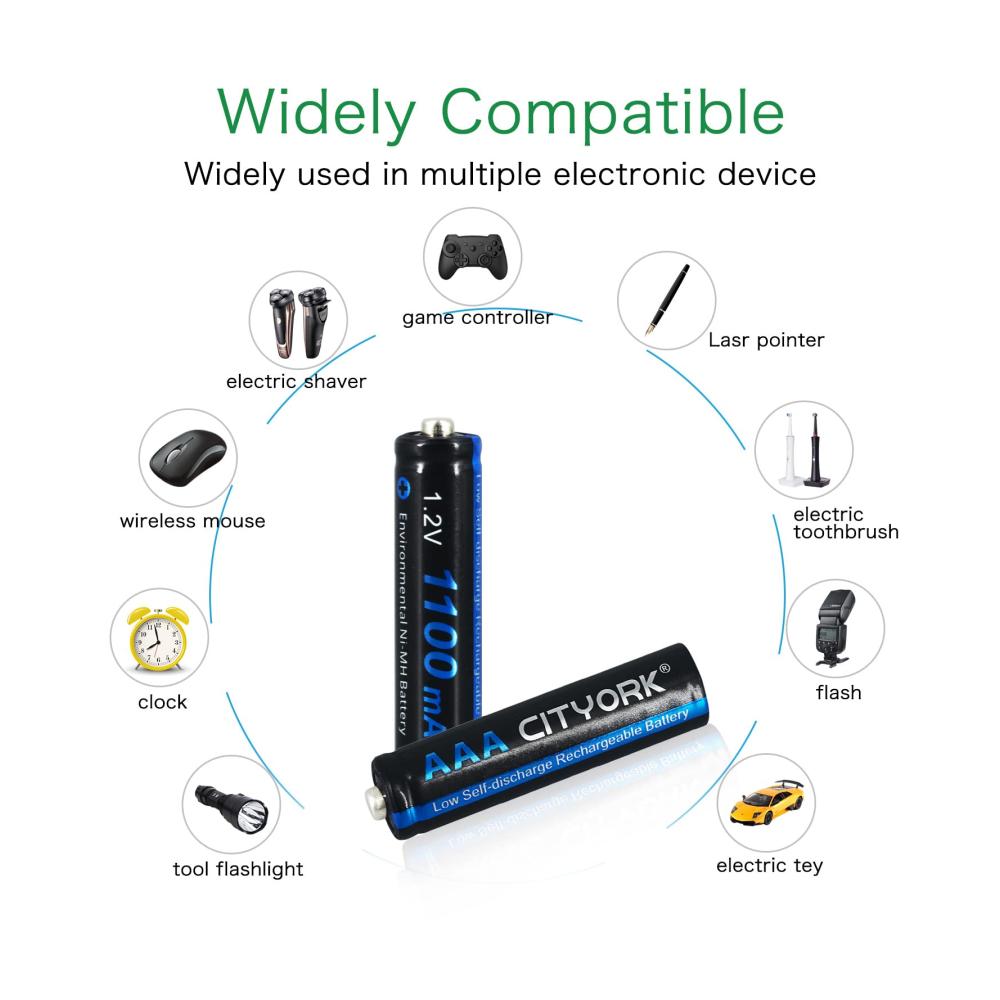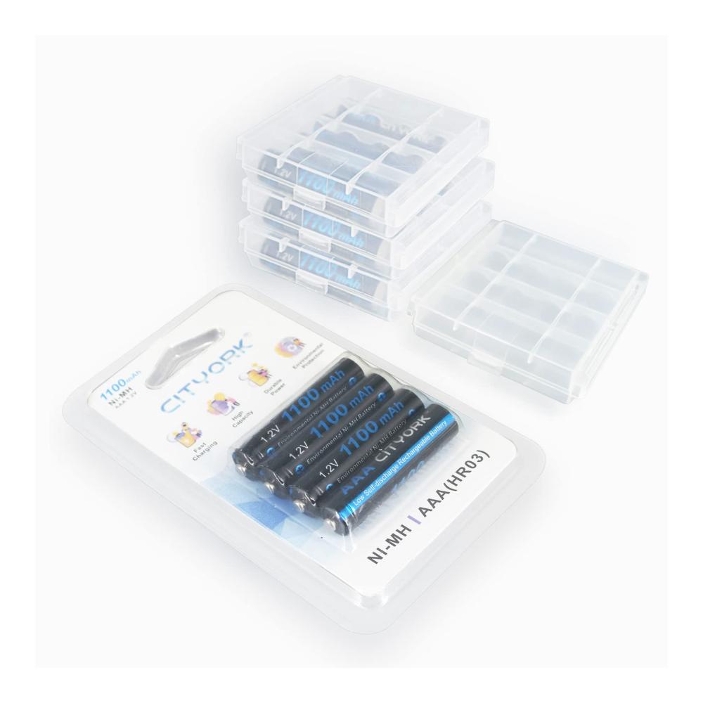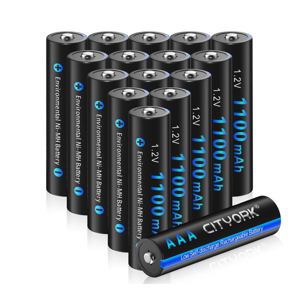 Erhalten Sie hochwertige Leistung mit unseren wiederaufladbaren AAA-Batterien von CITYORK! Das Paket enthält 16 Batterien, die eine hohe Kapazität von 1100mAh bieten und aus umweltfreundlichem NiMH-Material hergestellt sind.