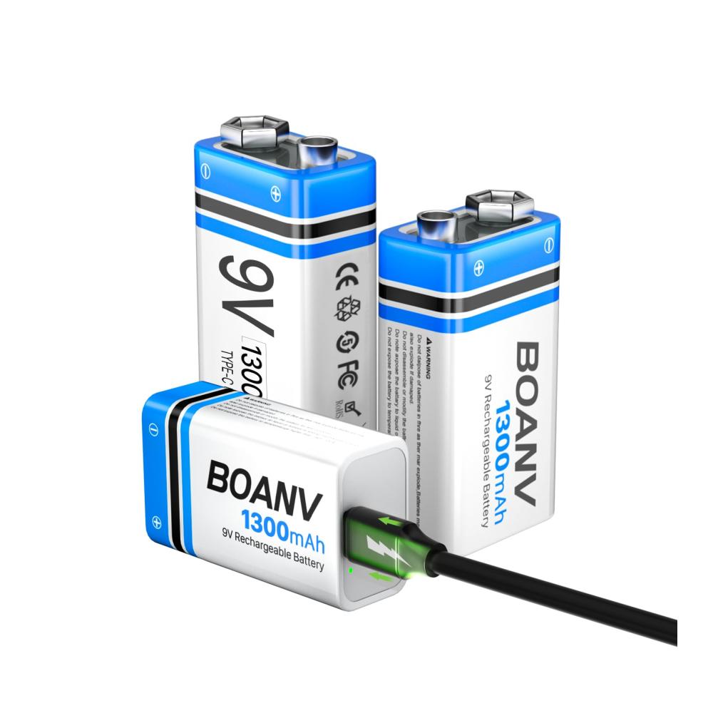 【Ausgezeichnete Leistung】: 3 PCS 1300mAh Akkus mit hoher Kapazität, getestet von professionellen Testern nach strengen Qualitätskontrollstandards, zertifiziert durch CE und RoHS. Der BOANV 9V Akku hat eine längere Akkulaufzeit und schnelles Aufladen. Bis zu 1500 effiziente Ladezyklen.
