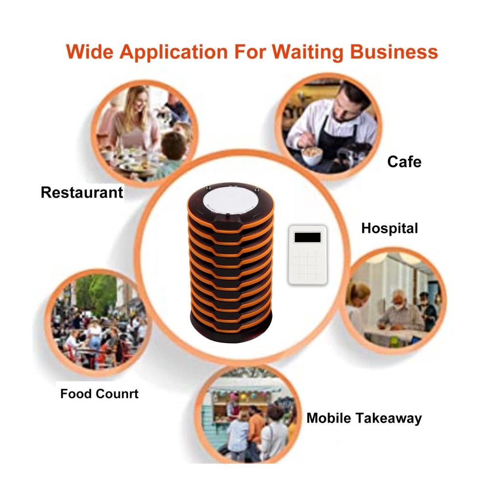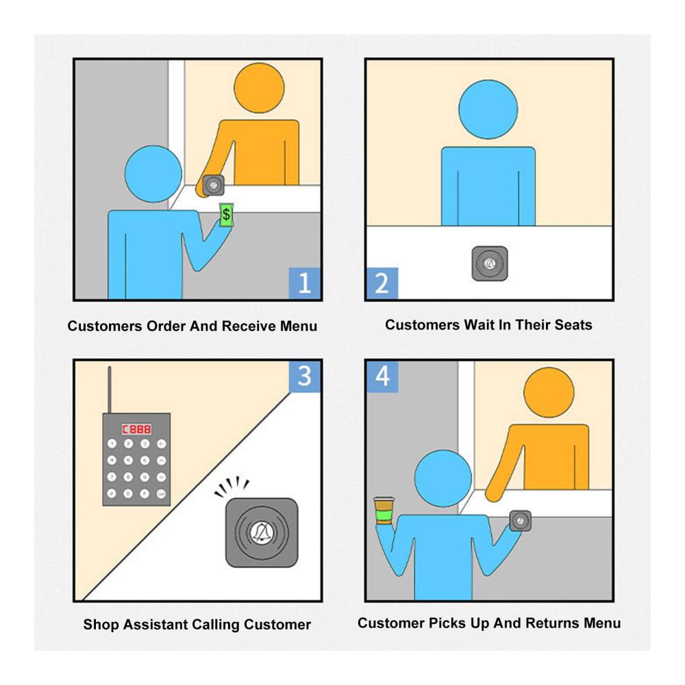 【MULTIFUNKTION】 Kann mehrere Pager gleichzeitig rufen. Geeignet für eine Vielzahl von Szenarien, ruhig oder laut; Restaurants; Hotels; Golfclubs; Spielplätze; Usw. Geben Sie Ihren Kunden die Freiheit, mit dem Restaurant in Verbindung zu bleiben. 24 Stunden Standby.