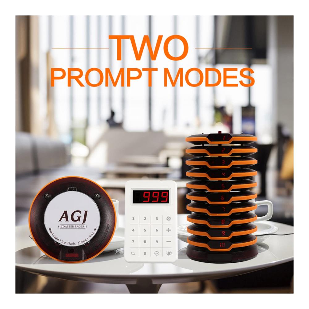 【3 BENACHRICHTIGUNGSMODI】 Der Summer-, Vibrations- und Blitzmodus des Pagers verbessert die Arbeitseffizienz, ohne dass in einer großen Arbeitsumgebung nach Kunden gesucht werden muss. Sie können die Benachrichtigungszeit auf maximal 999 Sekunden einstellen, um sicherzustellen, dass Kunden benachrichtigt werden.