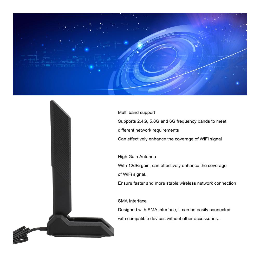 Multiband Unterstützung: Diese WLAN Antenne unterstützt 2,4G-, 5,8G- und 6G Bänder, um unterschiedliche Netzwerkanforderungen zu erfüllen, wodurch die Abdeckung des WLAN Signals effektiv verbessert werden kann.