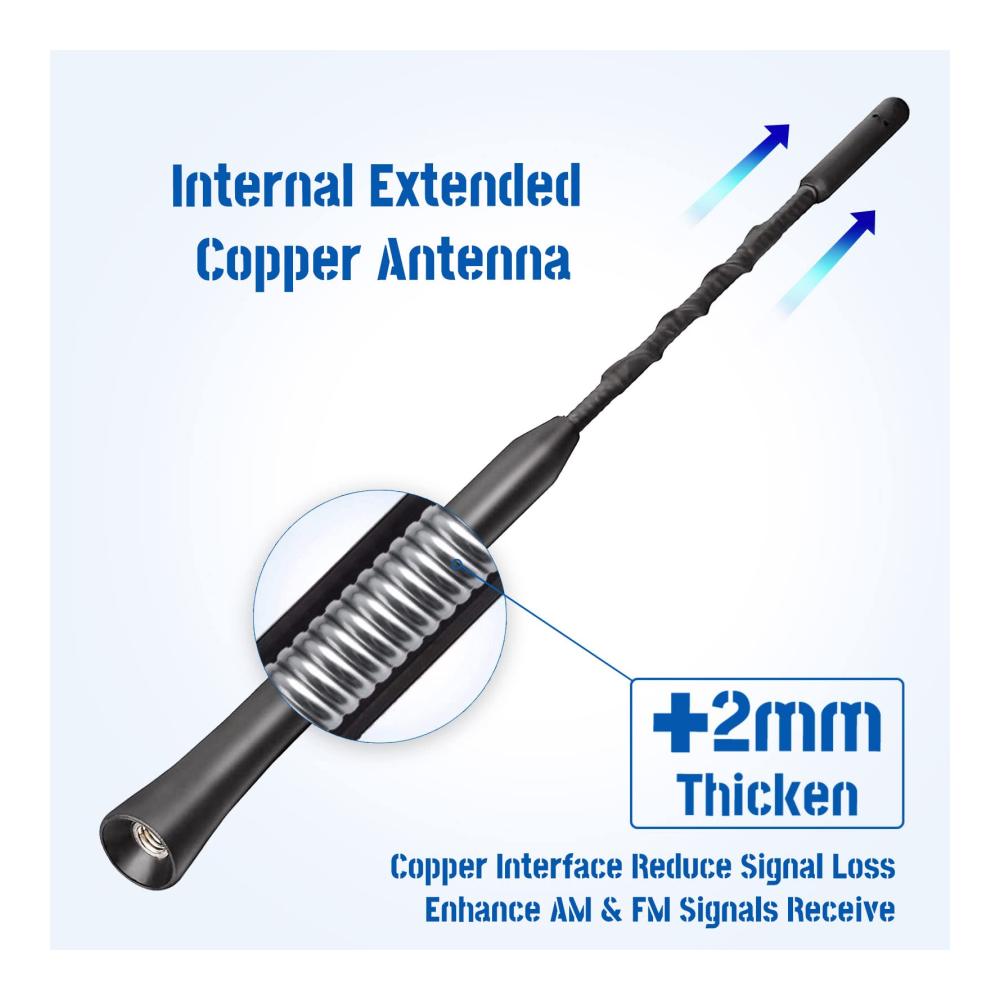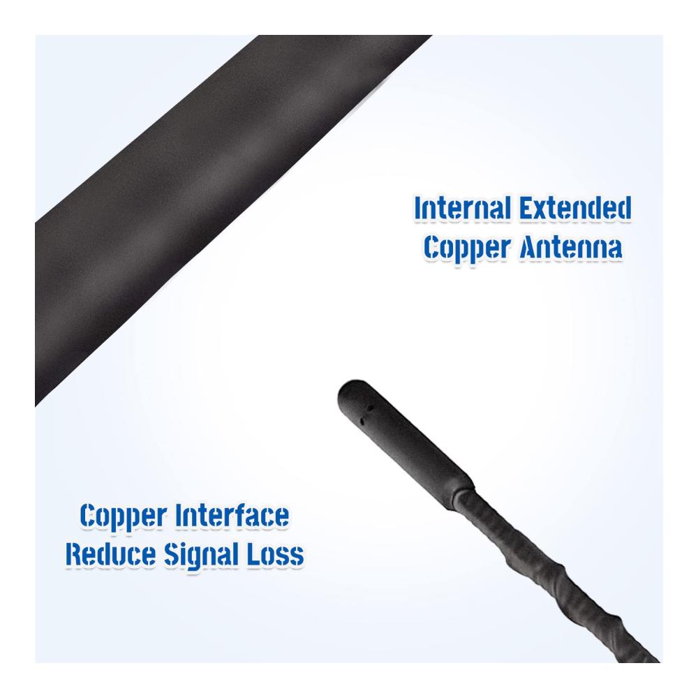 Die Antenne besteht aus Fiberglas mit einer geräuscharmen, spiralförmigen Außenschicht und einer robusten Gummibeschichtung. Einfach zu installieren und geeignet für M4, M5 und M6 Antennengewinde.