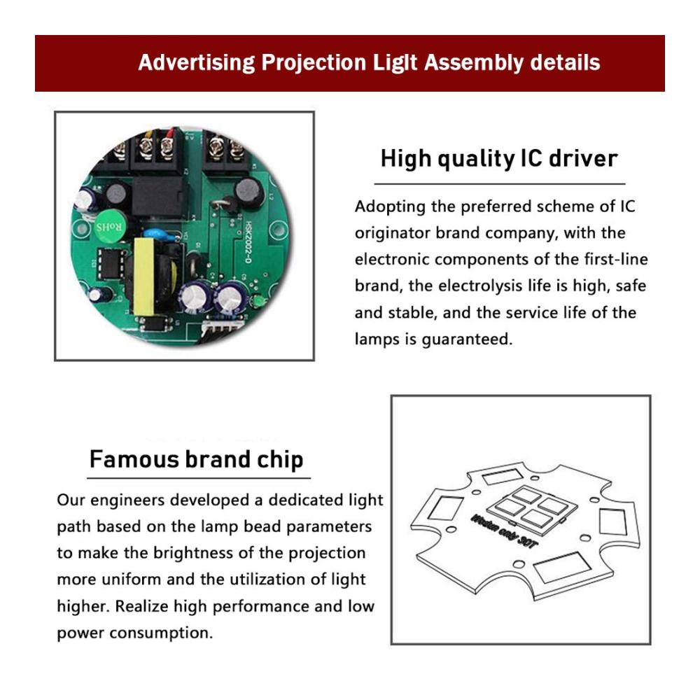 [Kostenloser Premium-Anpassungsservice]: Stellt für jede Bestellung kostenlos ein monochromes Glasmuster zur Verfügung. Anstatt einen Gobo zu kaufen, können Sie Ihre benutzerdefinierte Mustervorlage basierend auf Text, Monogrammen oder Logos in wenigen einfachen Schritten und ohne zusätzliche Kosten erhalten.