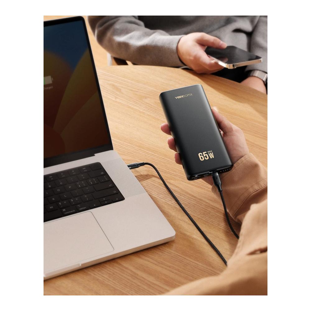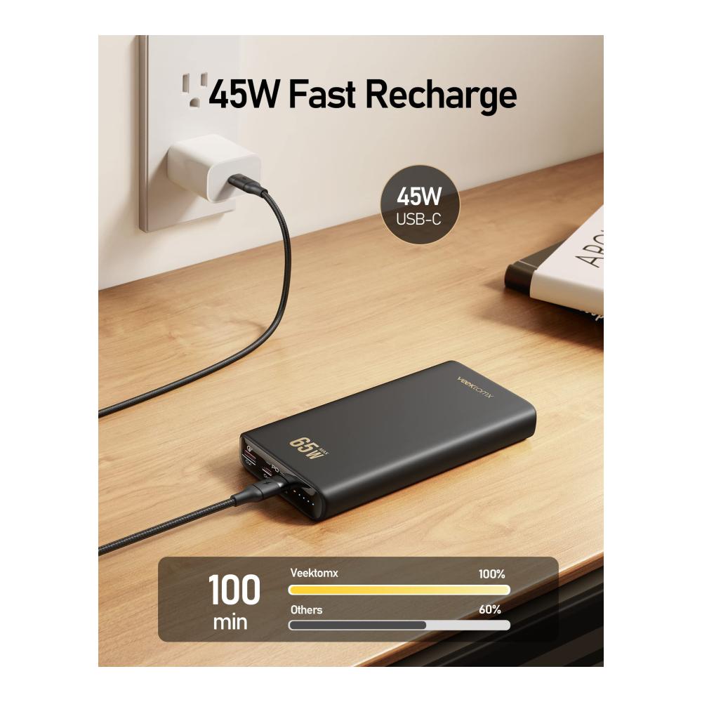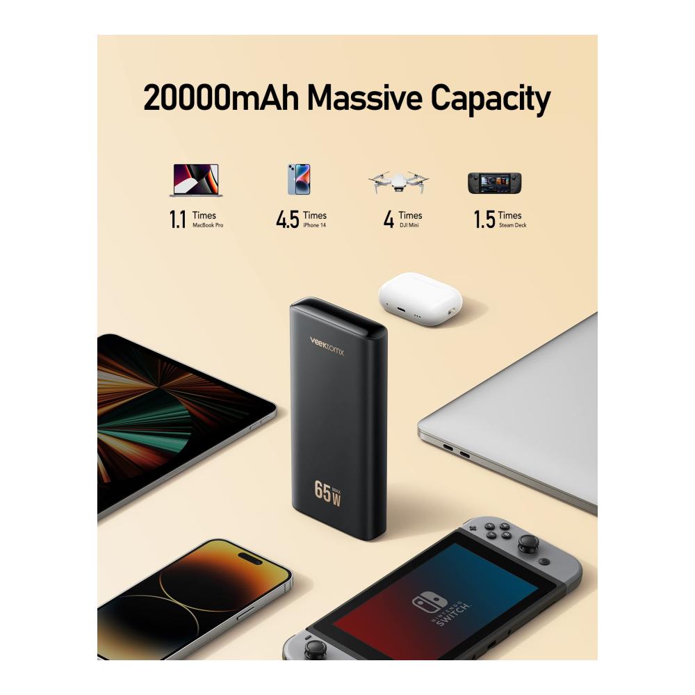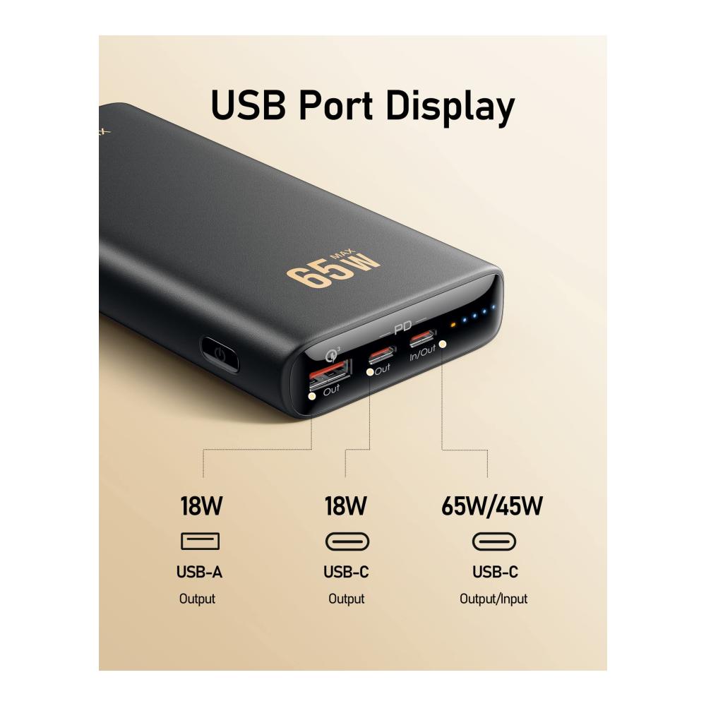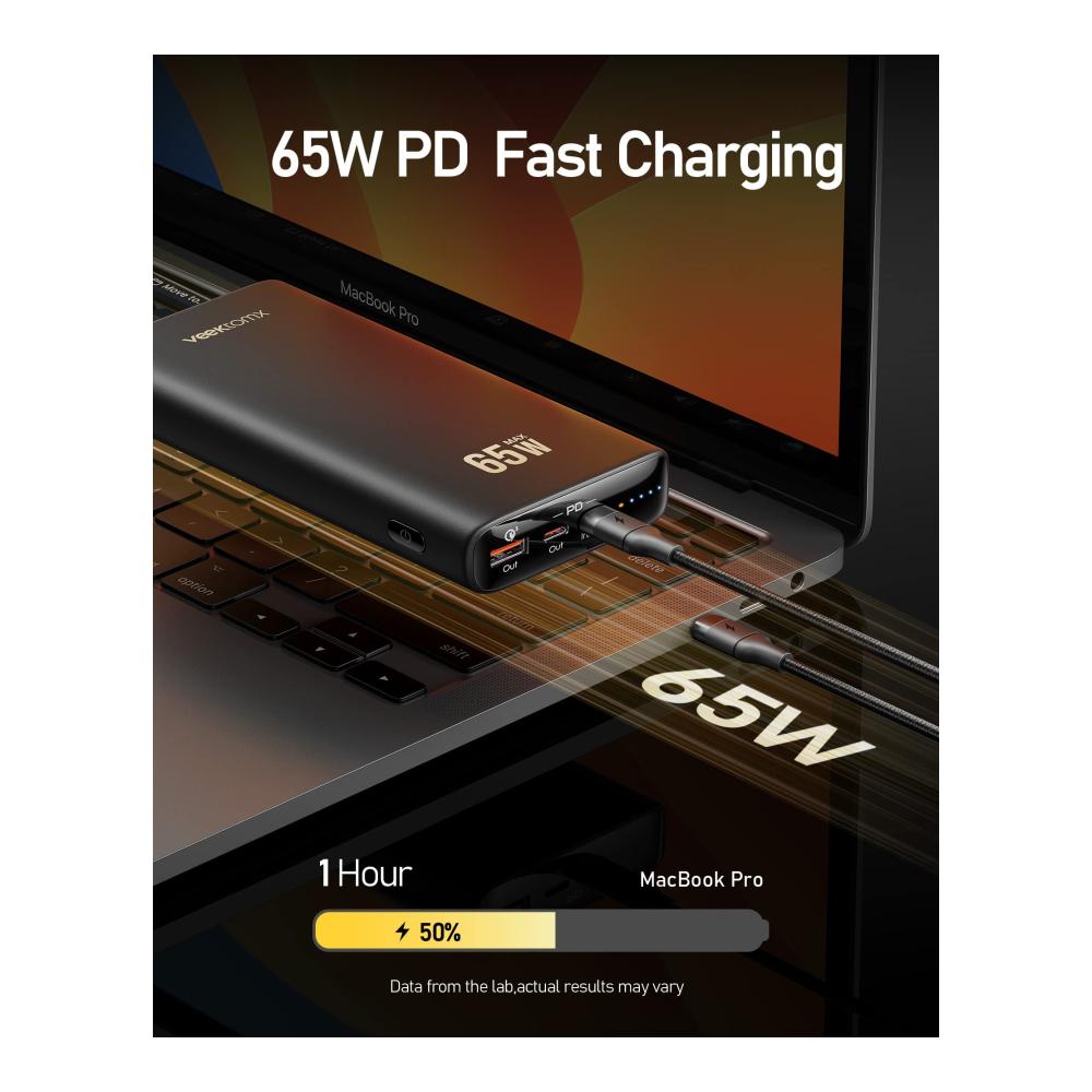 🔋 【65W PD Schnelles Aufladen】65W USB-C-Port ermöglicht ausreichend Leistung, um einen Laptop mit voller Geschwindigkeit aufzuladen. Dieses USB-C tragbare Ladegerät kann ein MacBook-Pro perfekt aufladen, es braucht nur 1 Stunden von 0% auf 50% 🔋 【20000 mAh Tragbares Ladegerät】Das 20000 mAh externe Akku bieten 1 Woche sorgenfreie Leistung, können Ihr MacBook Pro 1,1-mal, iPad air 1,4-mal, iPhone x 4,5-mal, Switch 2,8-mal, Samsung S9 4,2-mal aufladen 🔋 【Aufladen von 3 Geräten gleichzeitig】Mit einem 65W USB-C-Port und zwei 18W USB-Ports kann ein leistungsstarkes Laden mit bis zu 3 Geräten gleichzeitig geladen werden. Hinweis: Sowohl USB-Port teilen sich eine Gesamtleistung von 18W 🔋 【Schnell Voll Aufgeladen】USB-C unterstützt 45W PD schnelles Aufladen. Aufladen von 0% bis zur vollständigen Kapazität in 2 Stunden über 45W USB-PD-Stromadapter, 5,5 Stunden über 18W PD/QC 3.0-Stromadapter oder 11 Stunden über den Normalen 5V-2A-Stromadapter. (100W USB-C-zu-C-Kabel im Lieferumfang enthalten, Adapter nicht im Lieferumfang enthalten) 🔋 【Exklusive Technologie】Die eingebaute Sicherheitsvorkehrungen von dem Powerbank schützen Ihre Geräte vor übermäßiger Strom, Überhitzung und Überladung. Das Sicherheitssystem mit Multi Protection sorgt für einen vollständigen Schutz für Ihre Geräte Unser Power Bank 20000mAh 65W Powerbank Laptop PD3.0 QC3.0 USB C ist ein zuverlässiger externer Akku, der Ihnen schnelles Aufladen für verschiedene Geräte bietet. Mit einem 65W PD-Anschluss und zwei 18W USB-Anschlüssen können Sie bis zu 3 Geräte gleichzeitig laden. Die 20000mAh Kapazität ermöglicht eine Woche sorgenfreie Leistung und schnelles Aufladen über USB-C. Dank eingebauter Sicherheitsvorkehrungen sind Ihre Geräte jederzeit geschützt. Holen Sie sich jetzt Ihre Energiequelle für unterwegs!