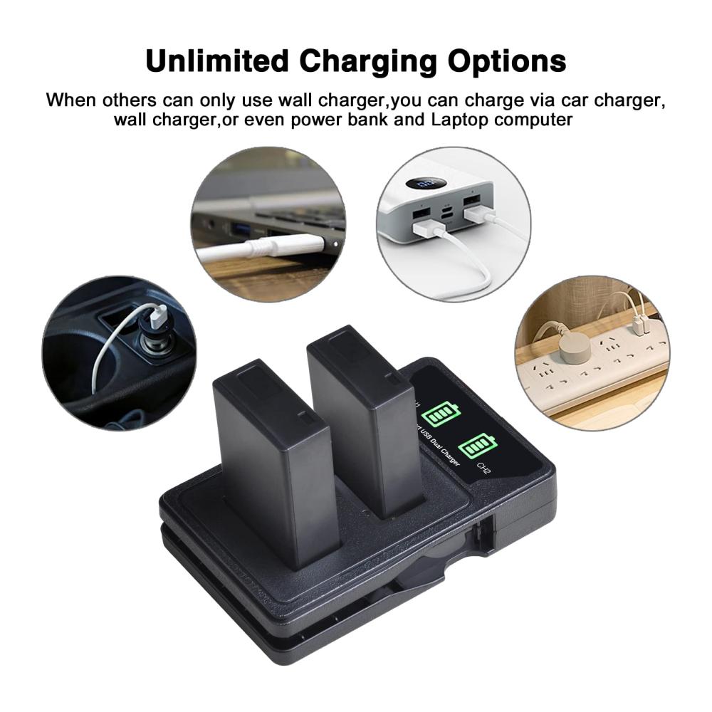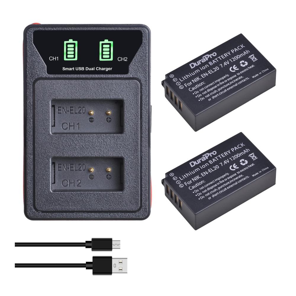 Erhalten Sie zusätzliche Energie für Ihre Kameras mit diesem Set aus 2 Lithium-Ionen Kamera-Akkus und einem LCD-USB-Ladegerät mit Typ-C-Anschluss. Kompatibel mit einer Vielzahl von Nikon-Modellen, einschließlich EN-EL20 und EN-EL20a, sowie Coolpix P1000, P950, Coolpix A und mehr.