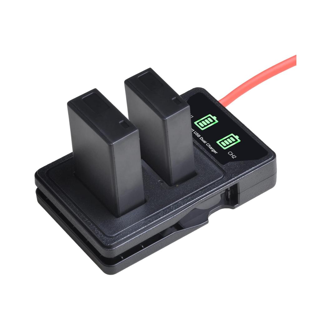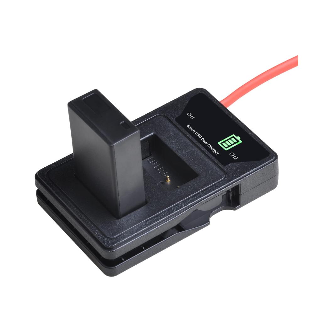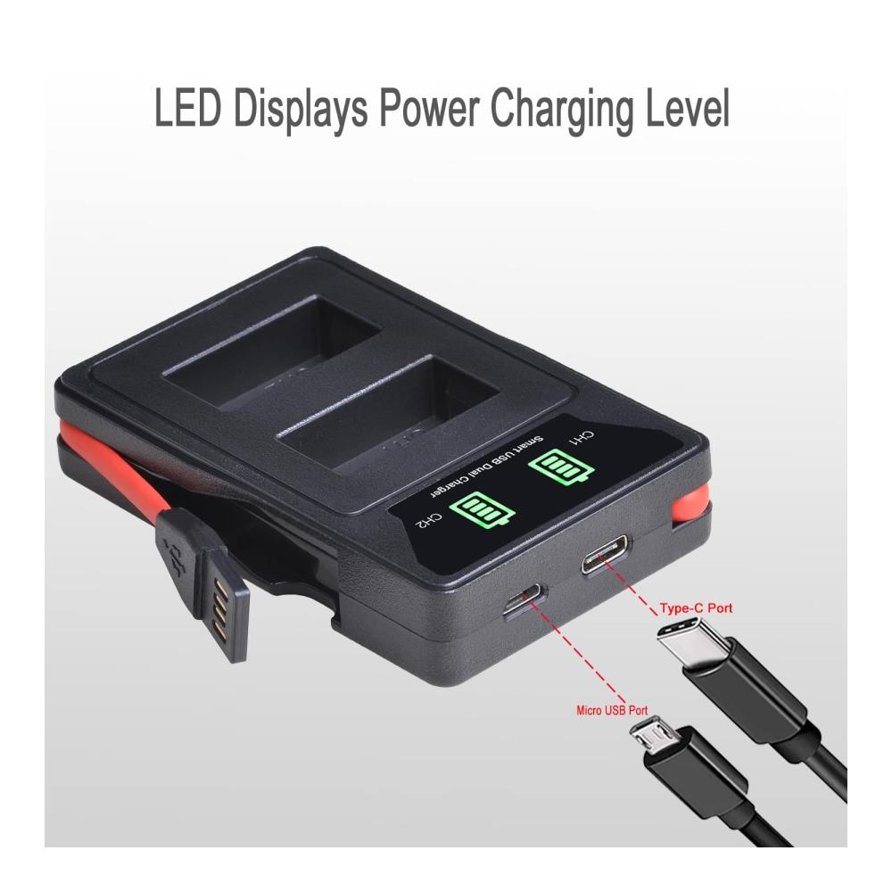 Das Paket enthält 2 EN-EL20 Batterien, ein LCD-USB-Ladegerät, ein USB-Ladekabel und eine Bedienungsanleitung. Das Ladegerät verfügt über einen Eingang von DC 5V / 2A 10W und einen Ausgang von DC 8,4 V / 600 mA 5 W. Es besteht aus ABS-Kunststoff und Polycarbonat und bietet eine Garantie von 30 Tagen.