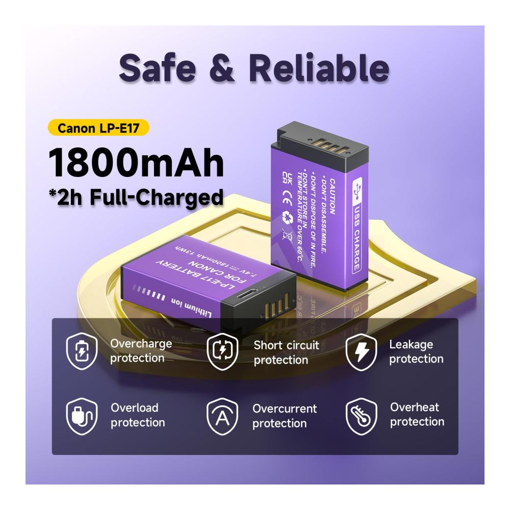 Mit 1800mAhmAh bietet der LP-E17 USB-Akku 38% mehr Kapazität als andere 1300mAh Ersatzakkus! Er ist ein idealer Ersatzakku für Canon Kameras.
